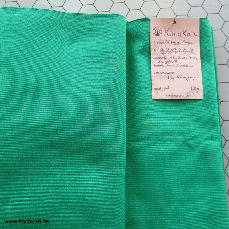 Vintage Seiden Rips Nagoya Obi buntgewebte Streifen in grüner Basis