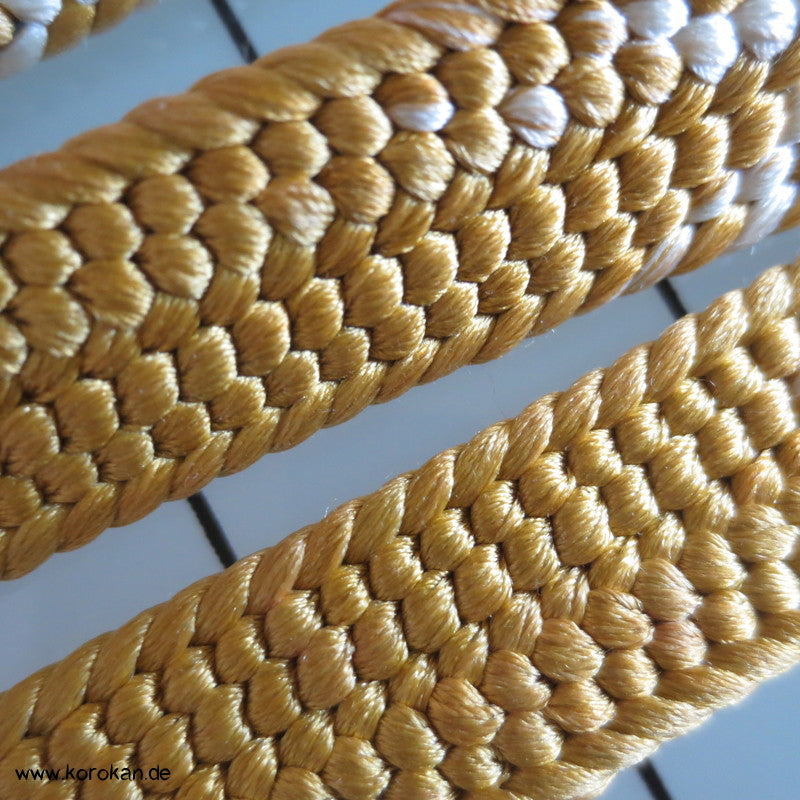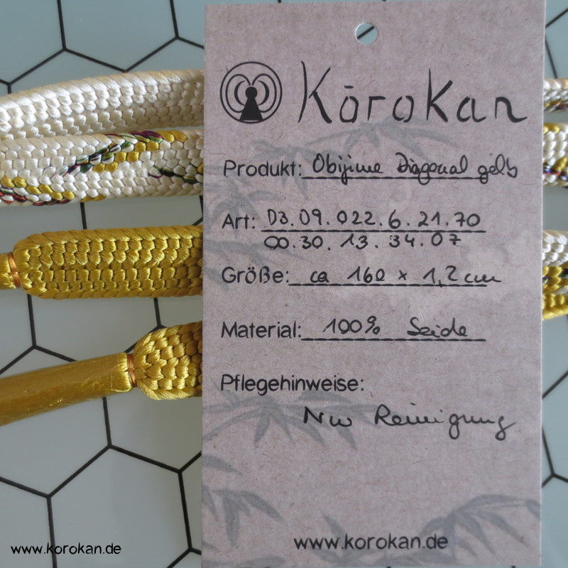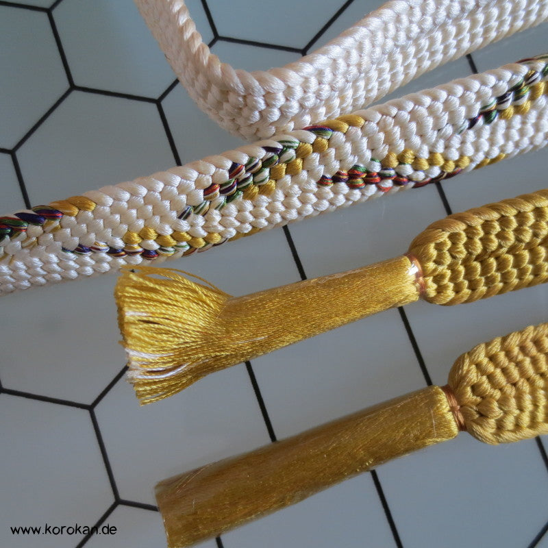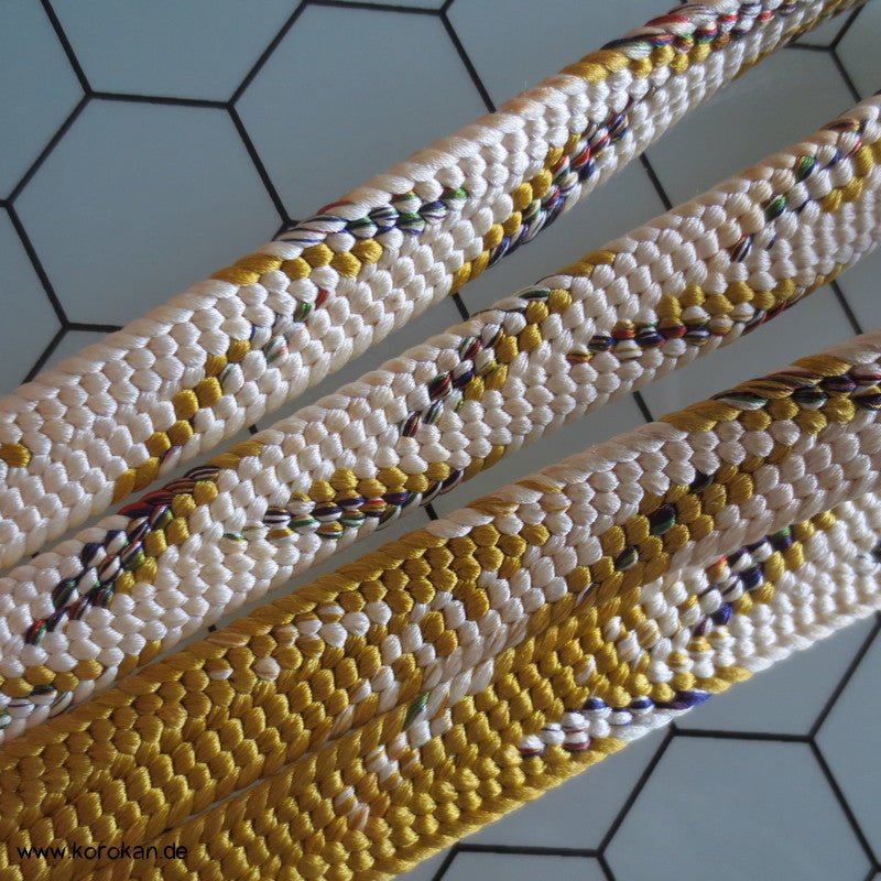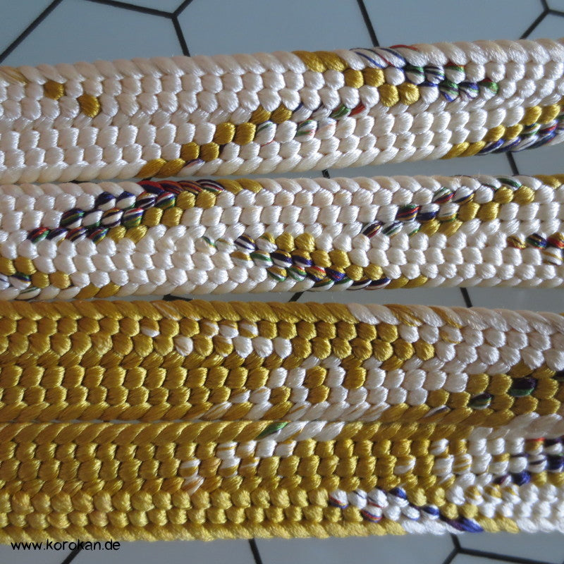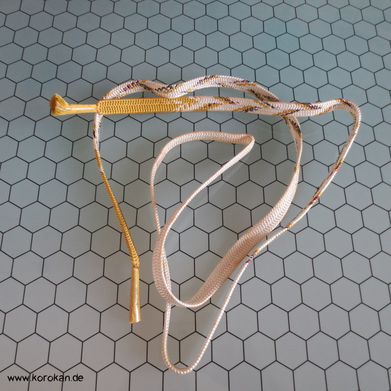Vintage japanischer Flecht Seiden Obijime natur gelb mit buntem Abschnitt Farbverlauf