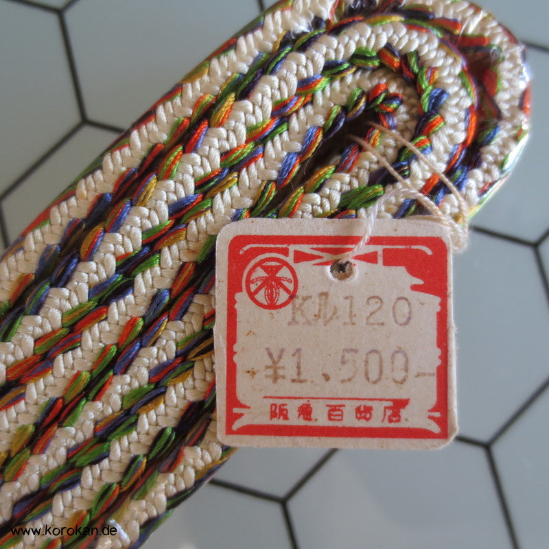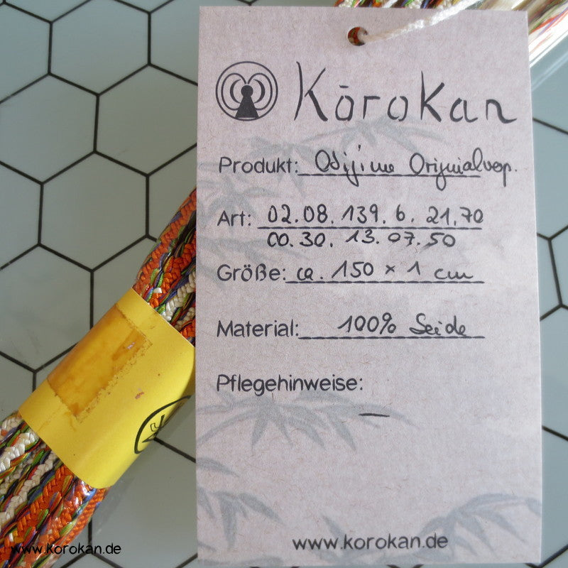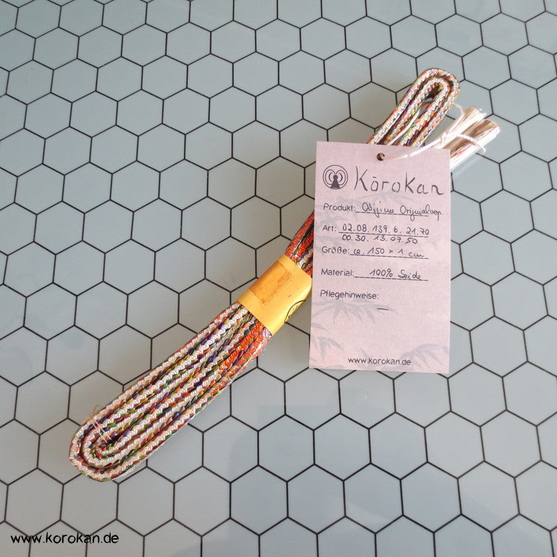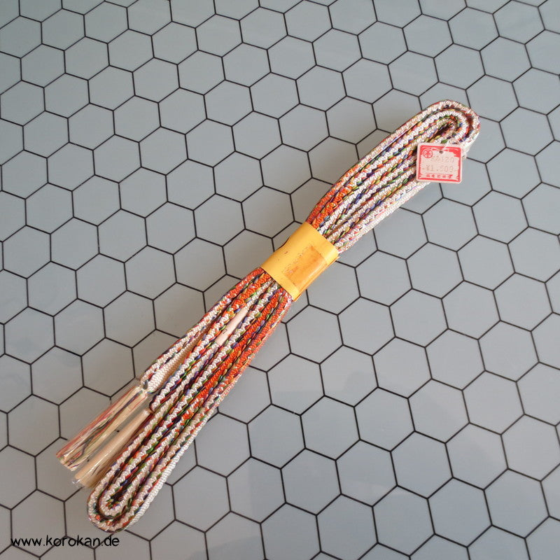 Vintage japanischer Flecht Seiden Obijime orange regenbogenbunt meliert geflochten