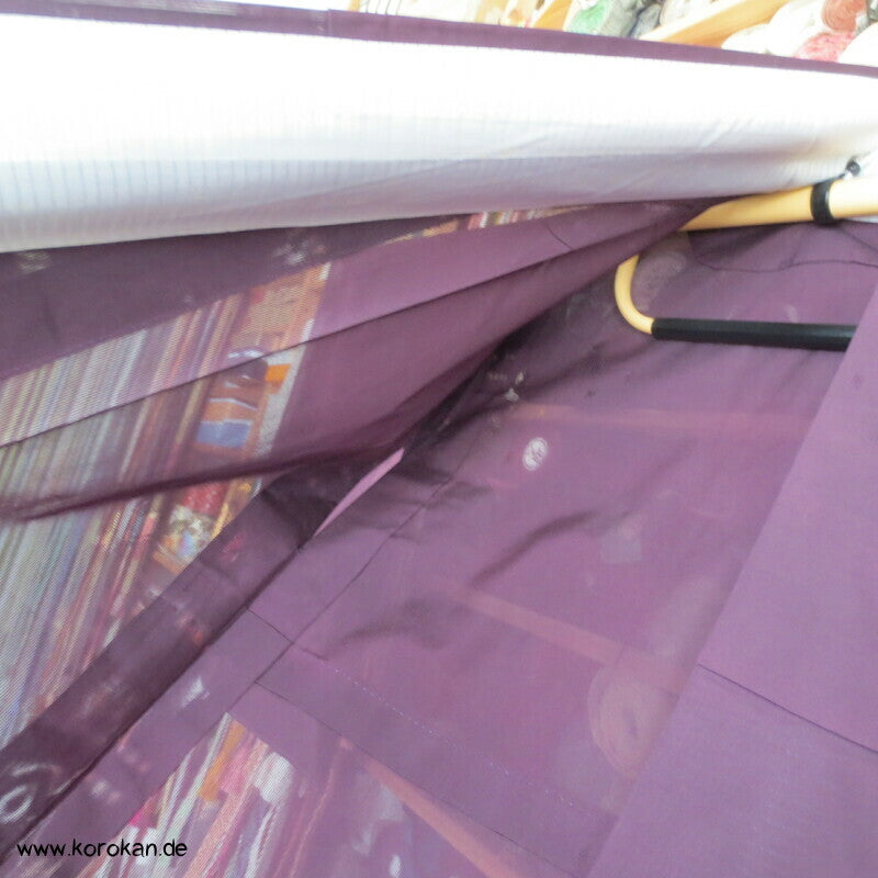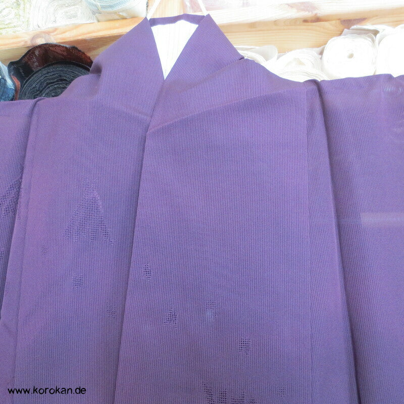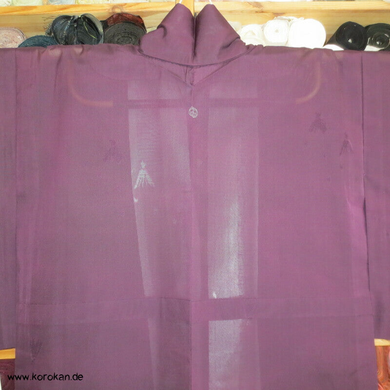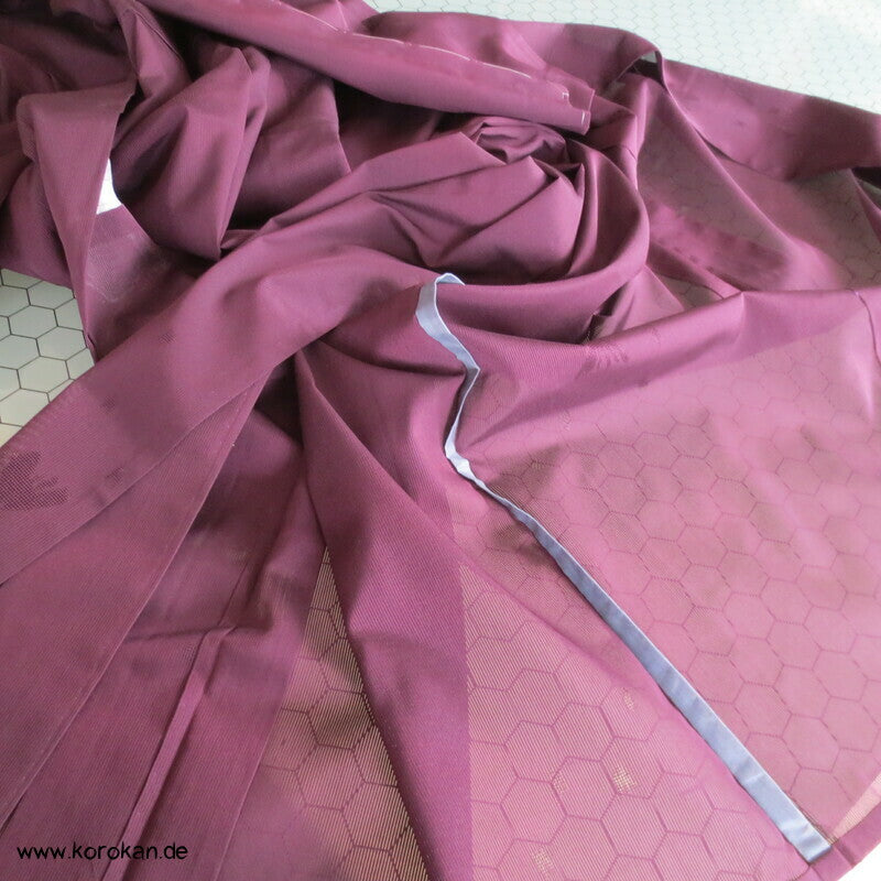 Vintage Sha Muster Drehergewebe Seide Kimono aubergine Reisgarben als Durchbruchmuster gearbeitet, für den Sommer oder als Negligée