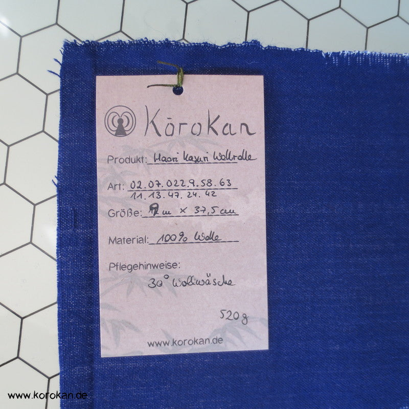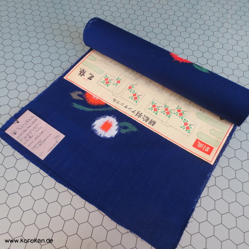 Restrolle Kasuri Blüten rot auf blau - Wollstoff für Haori Kimono Jacke