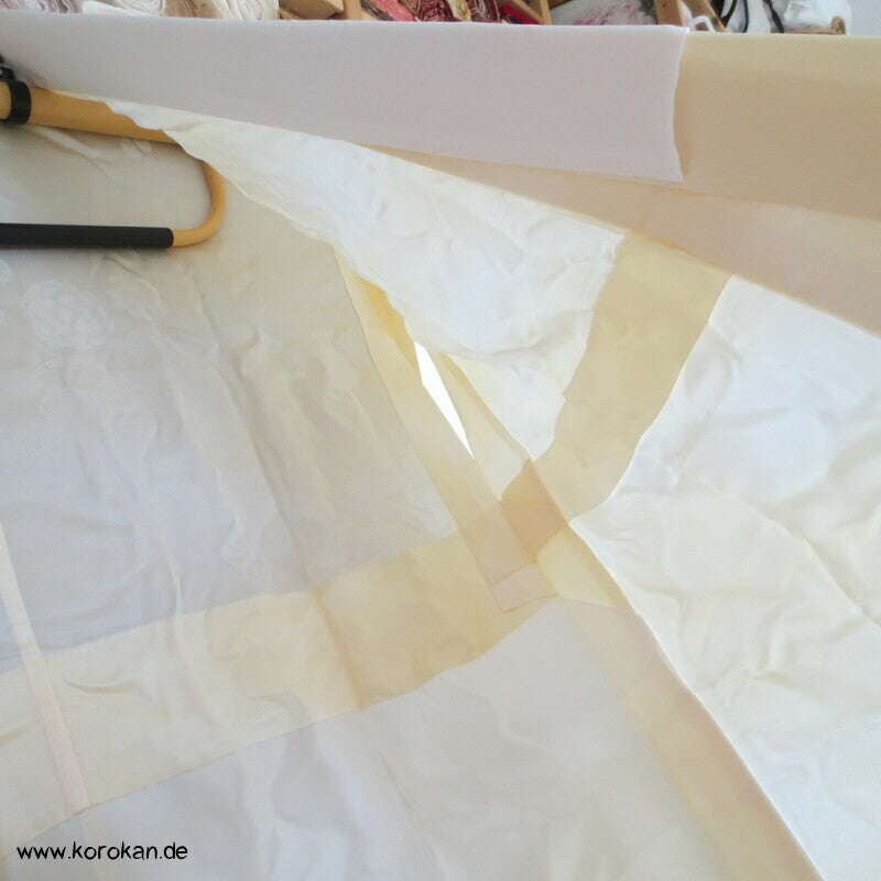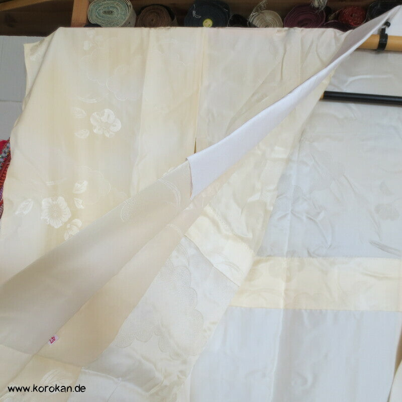 Vintage Juban Unter Kimono Blüten Seidendamast mit Bokashi Verlauf, Han Eri Seidenrips mit langen Ärmeln für Furisode Kimono