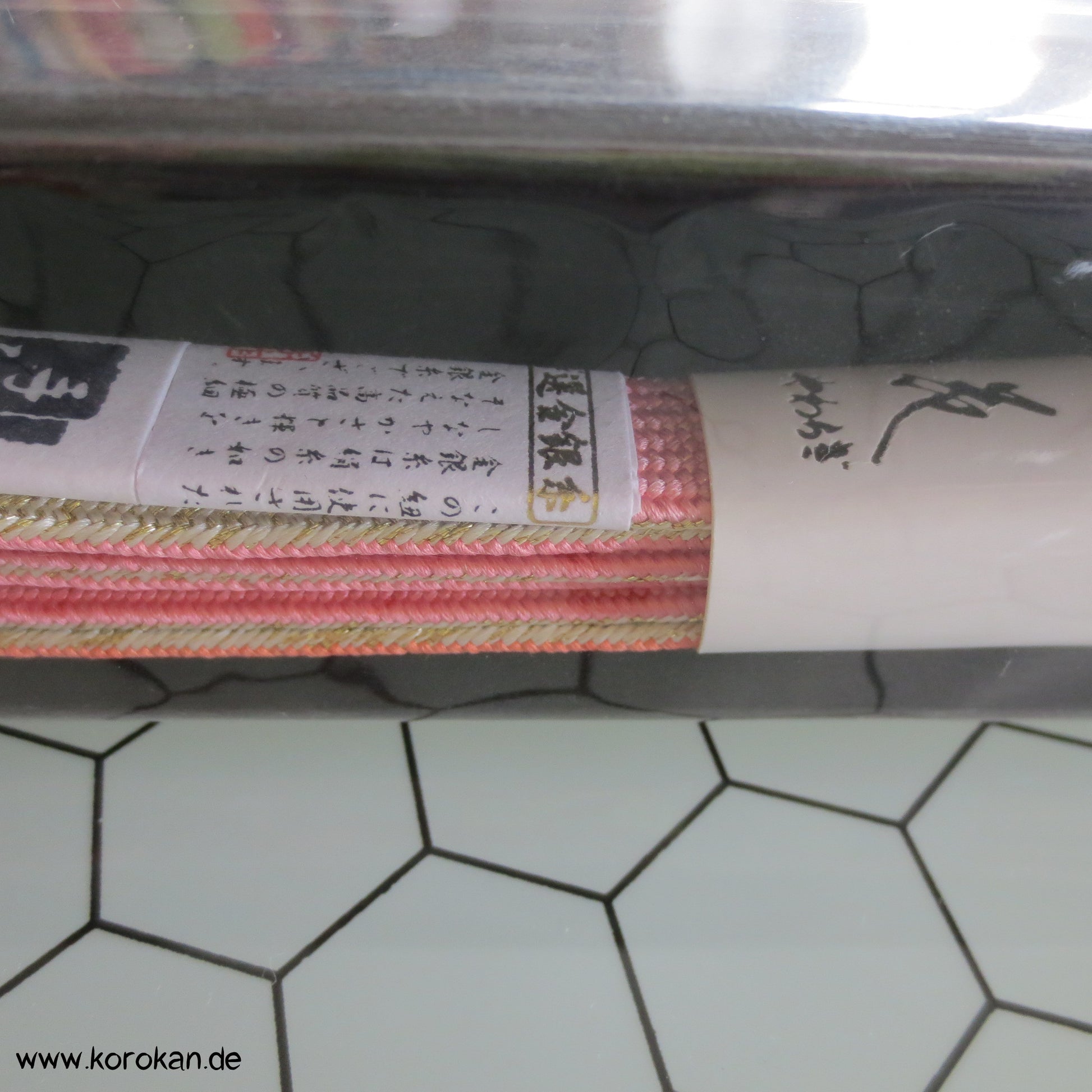 flacher Obijime rosa azalee mit gold, Troddeln in Pappbox