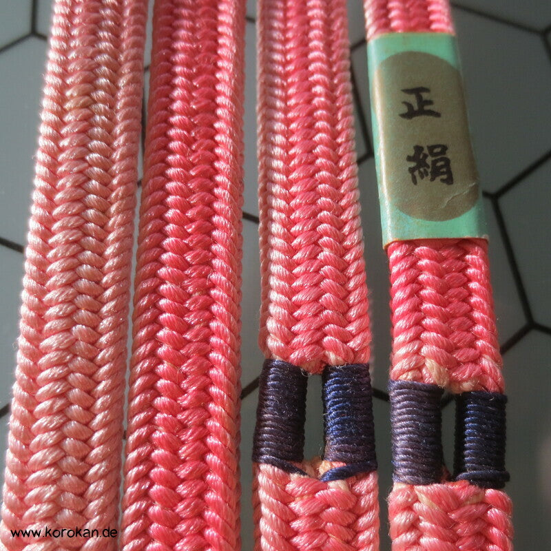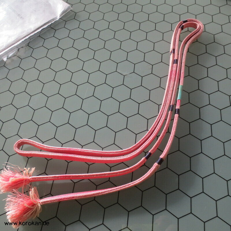 Vintage Obijime, rosa mit Teilungen mit blauen Bauchbinden