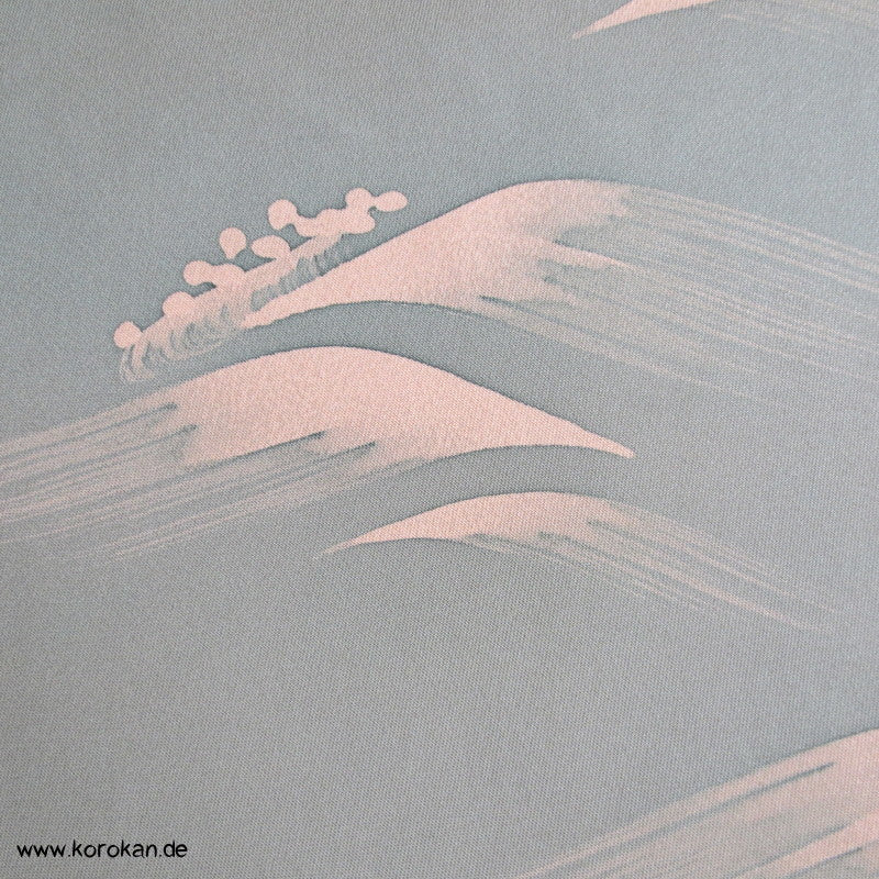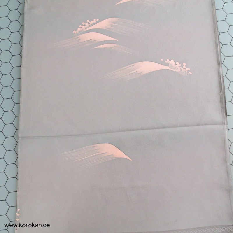 rosa Wellen auf grauem glatten Crepesatin Kimono Seide