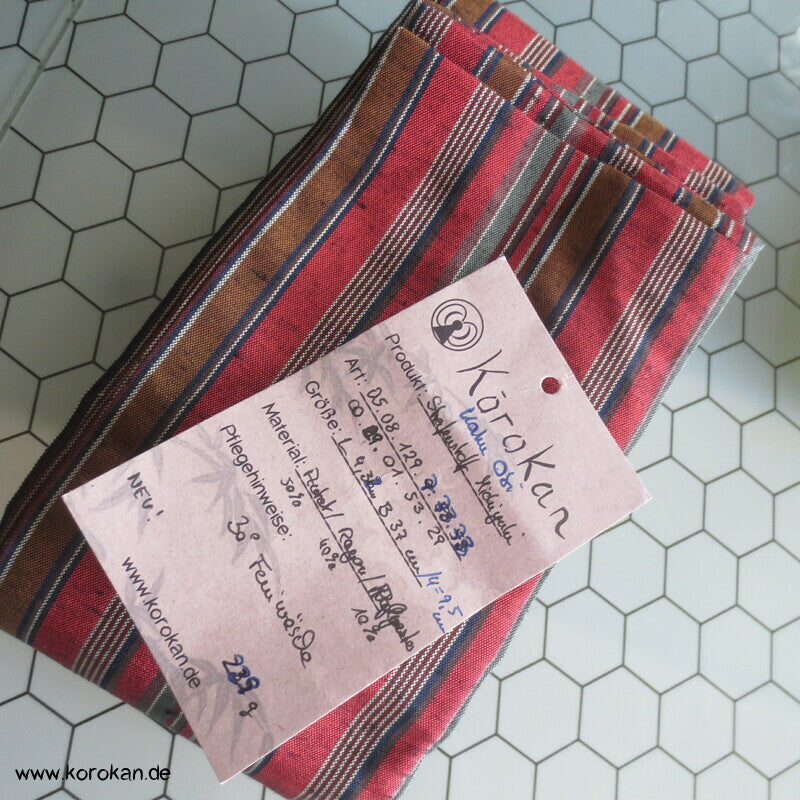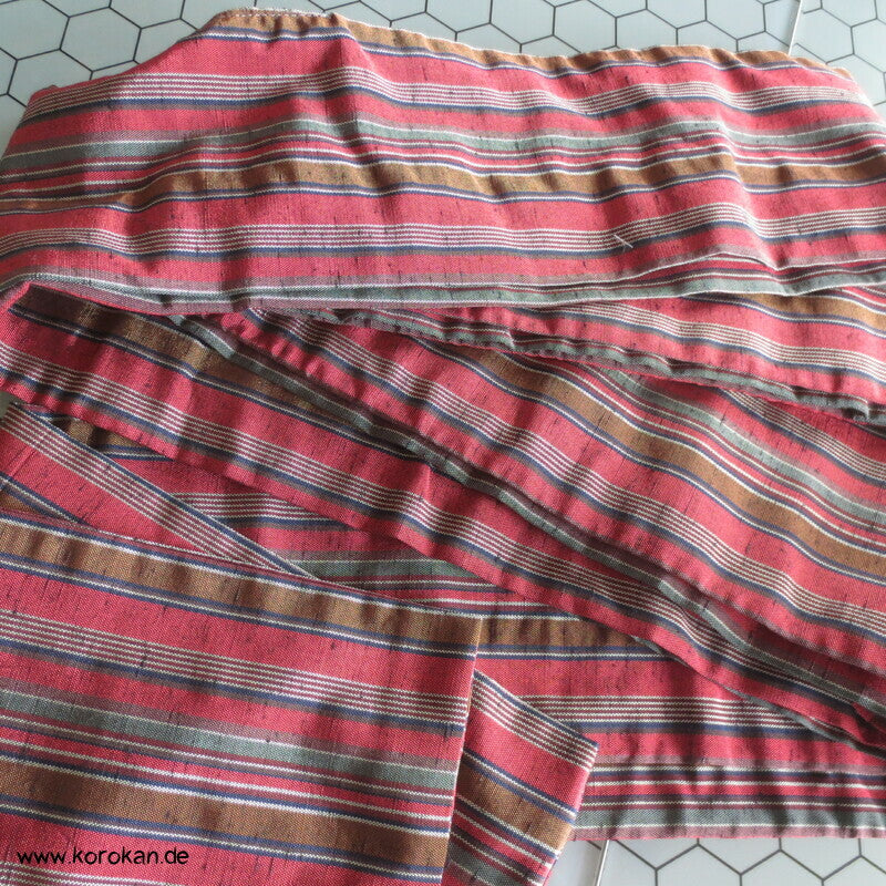 Kaku Männer Obi Gürtel, 4 fache Lage, Upcycling aus einem Kimono Stoffrest Streifen Mischgewebe