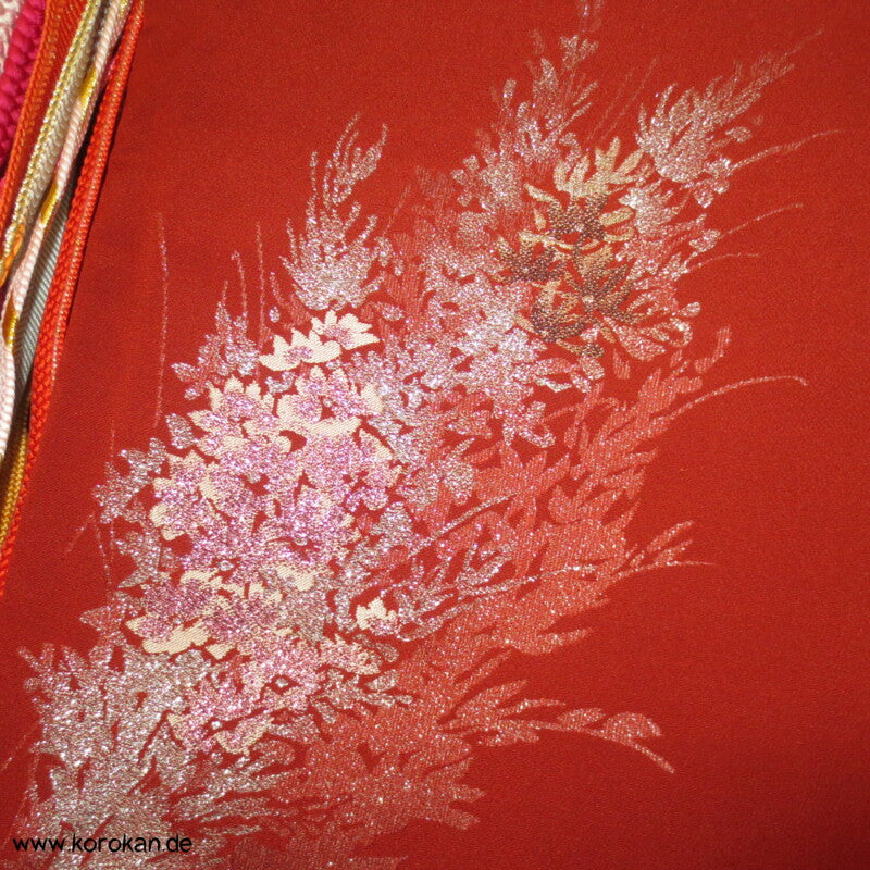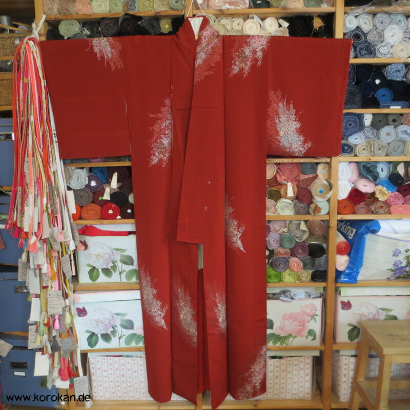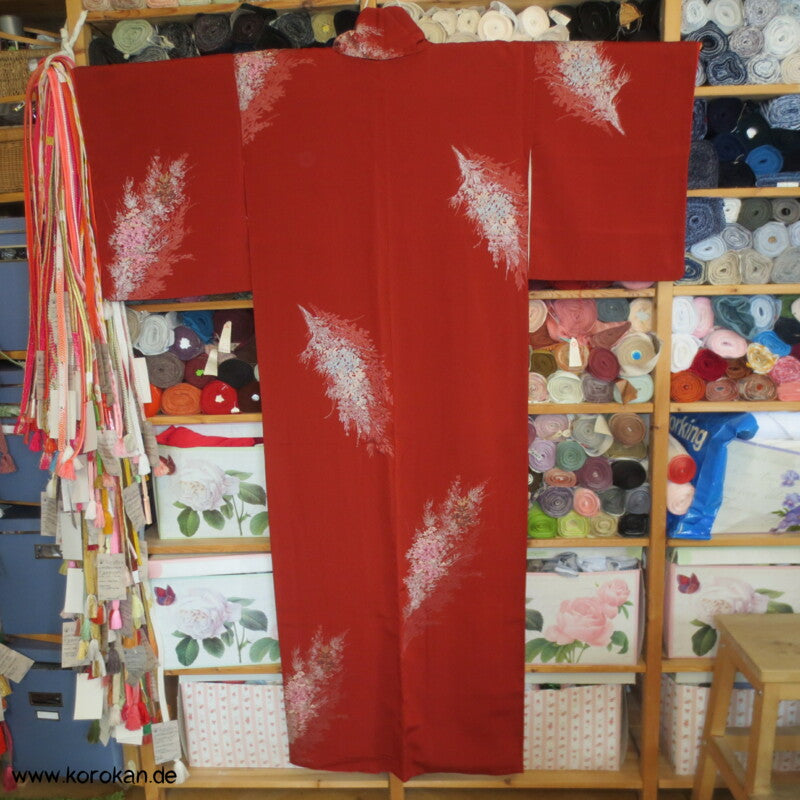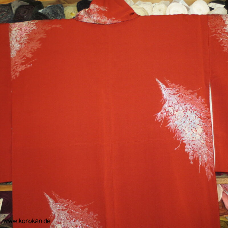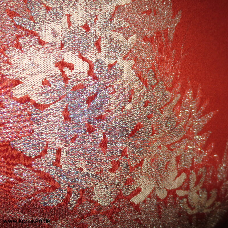 rostrot mit glänzenden Zweigen Seiden - Lurex Jacquard Komon Kimono