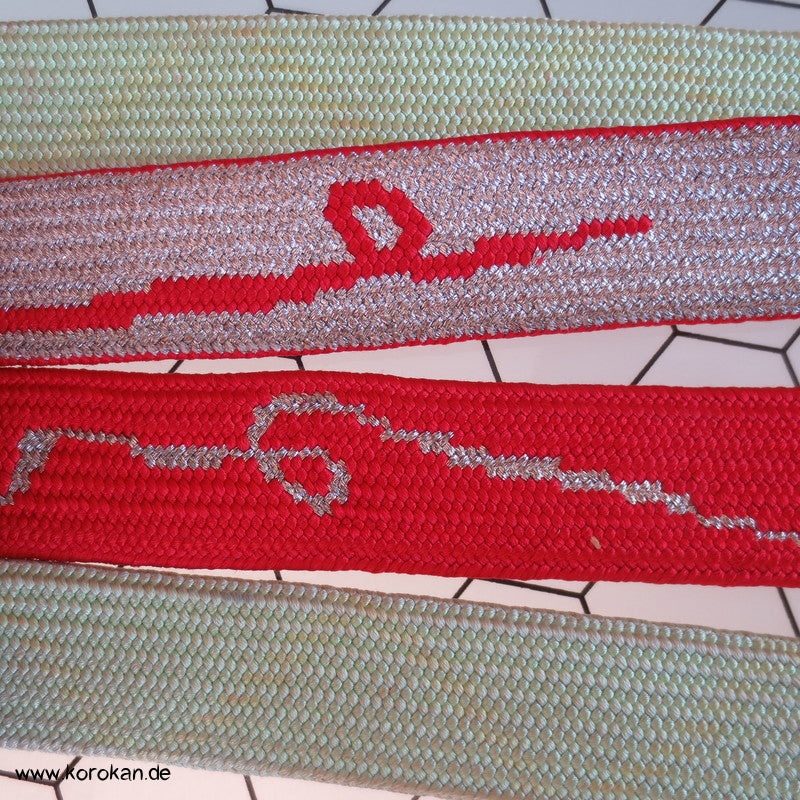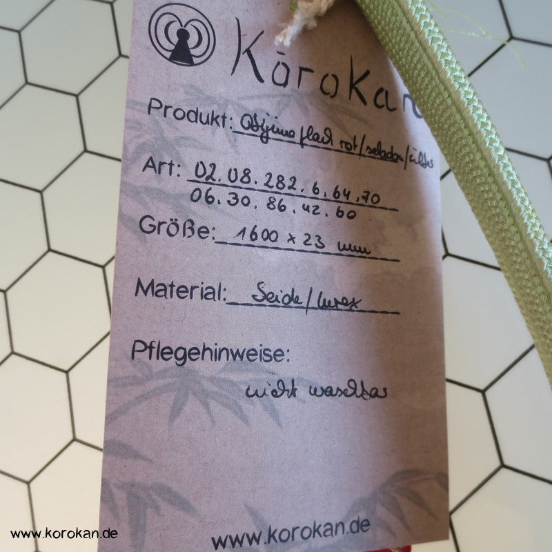 rot seladon silber - Kringel Obijime, geflochten, flach