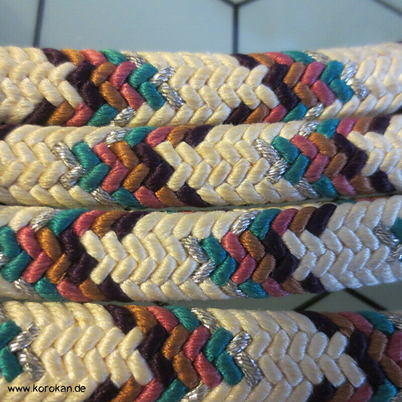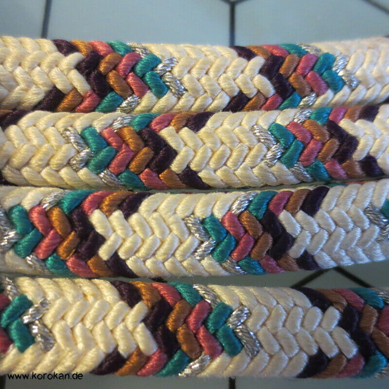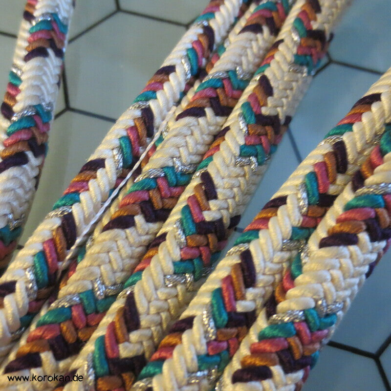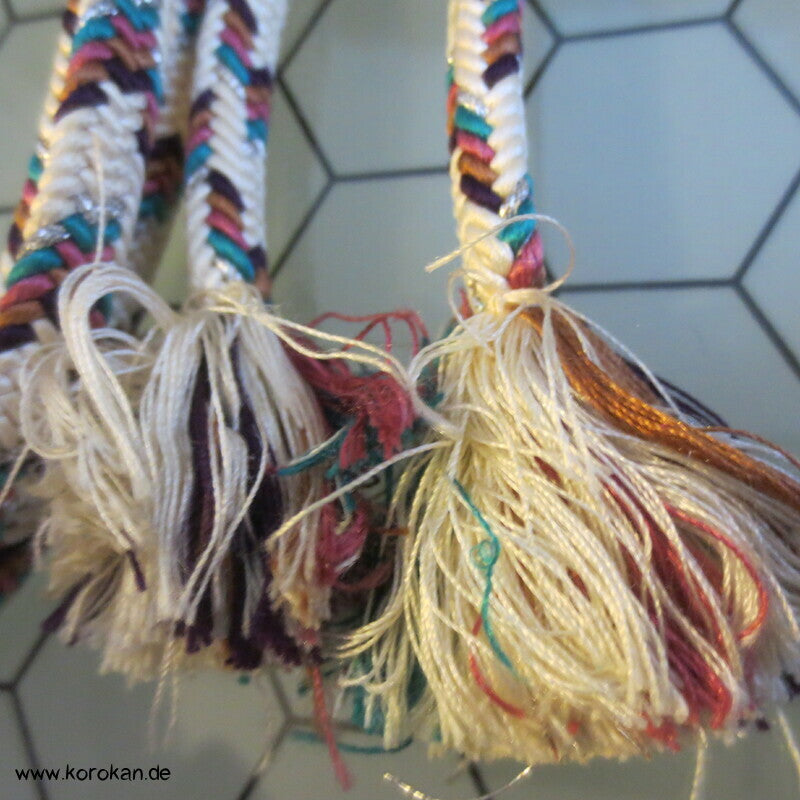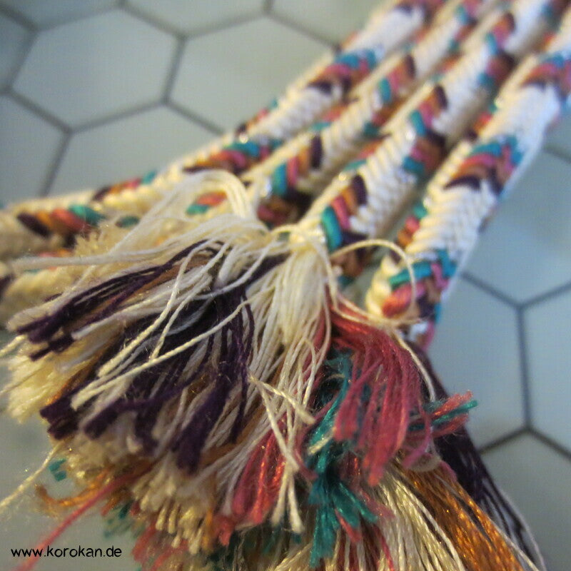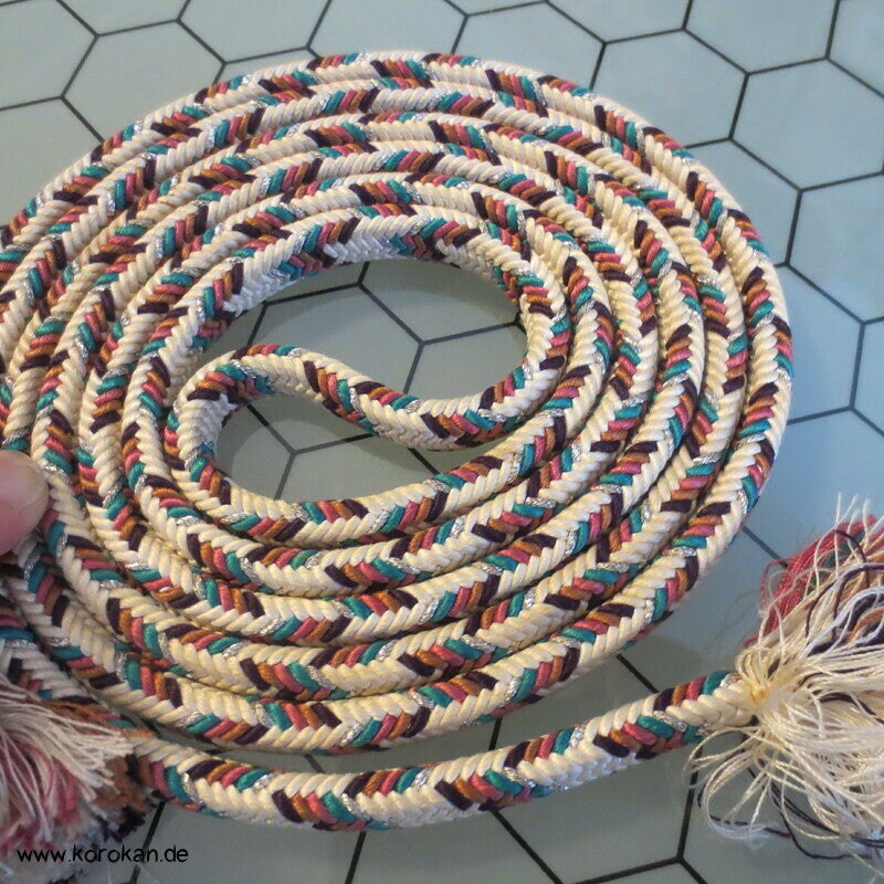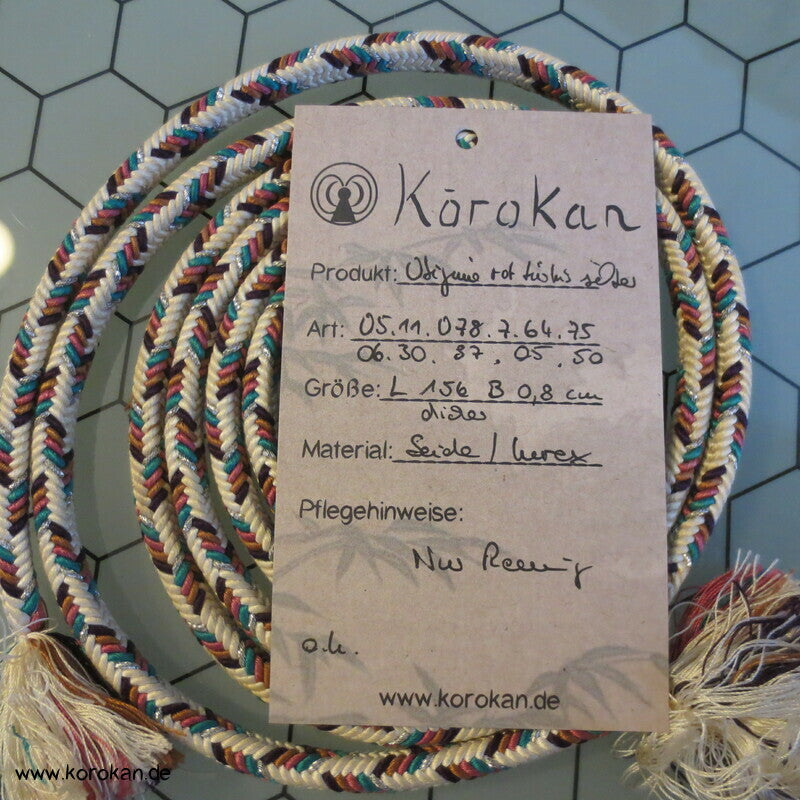 Vintage flacher Obijime weiß türkis azalee rosa braun silber Obijime, Seide / Lurex