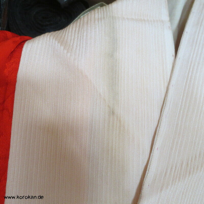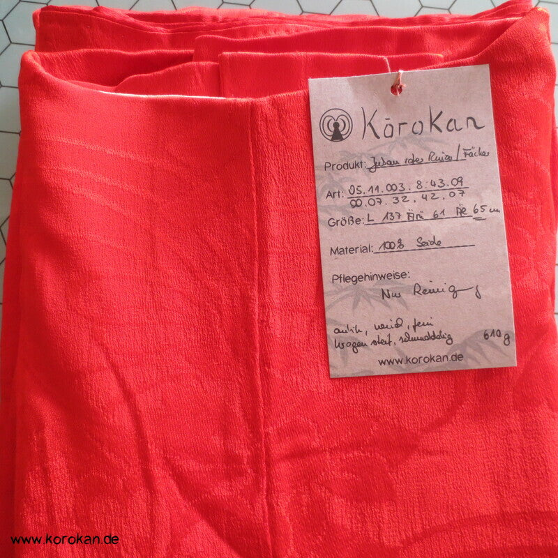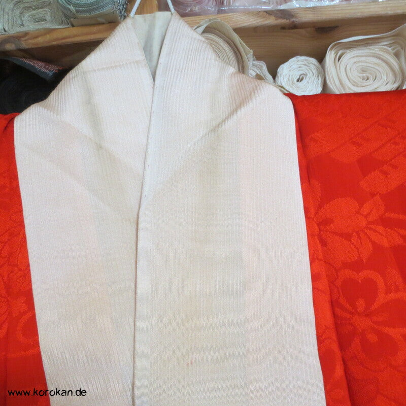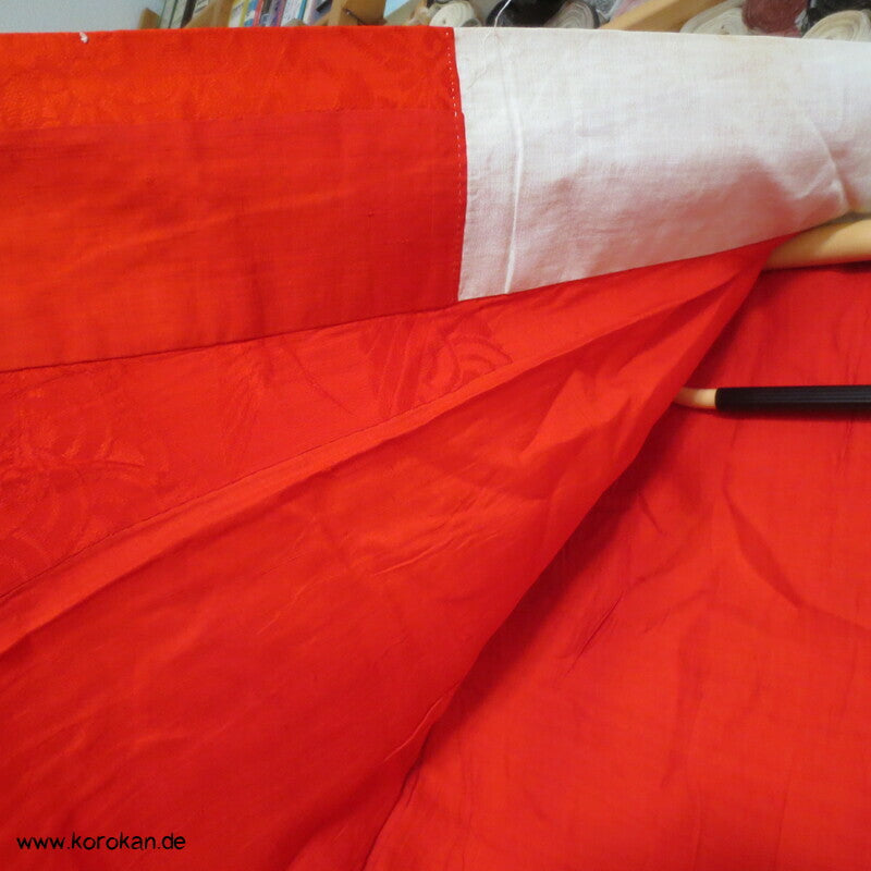 antiker Juban Unter Kimono rote hauchdünne Damast Seide, mit rotem Seidenfutter, hellem Seidenrips Han Eri Kragen
