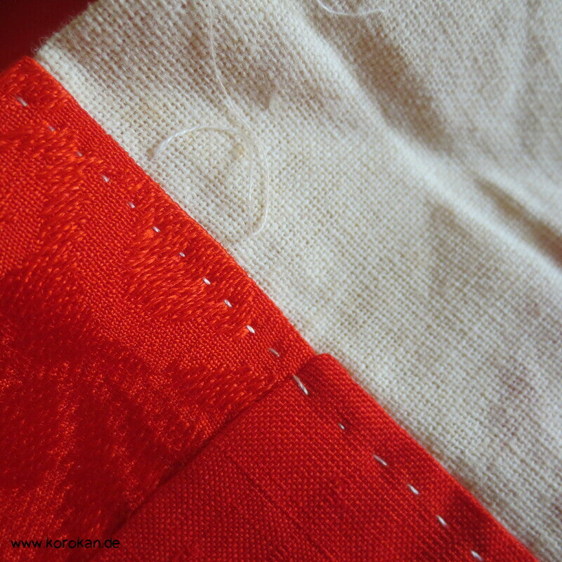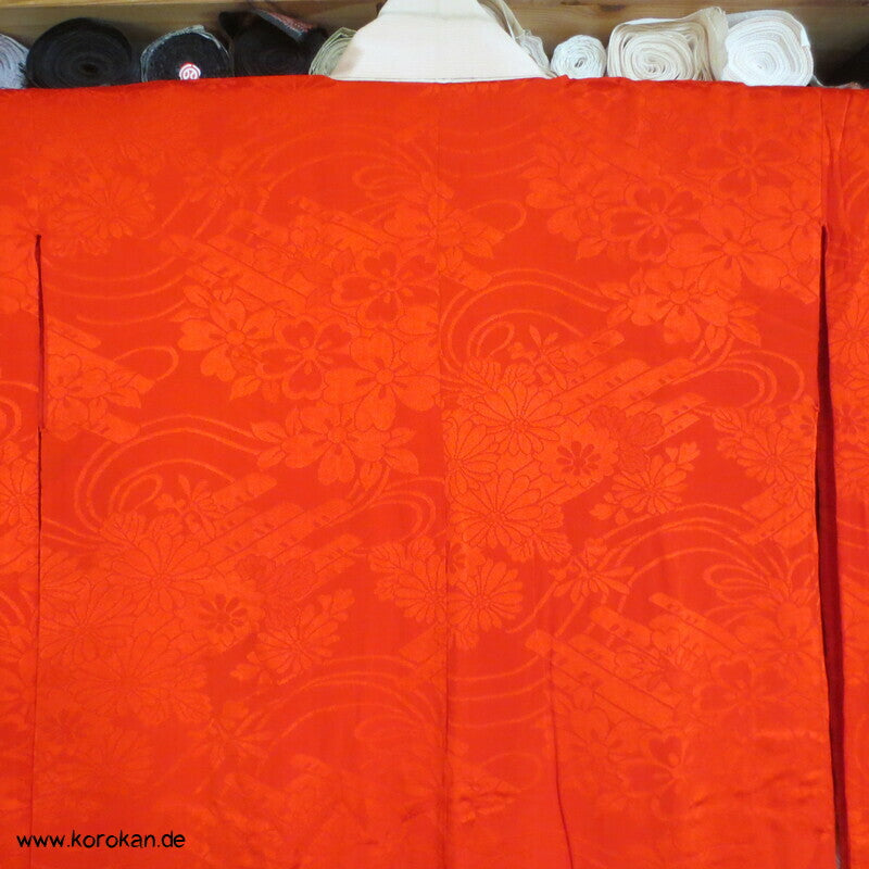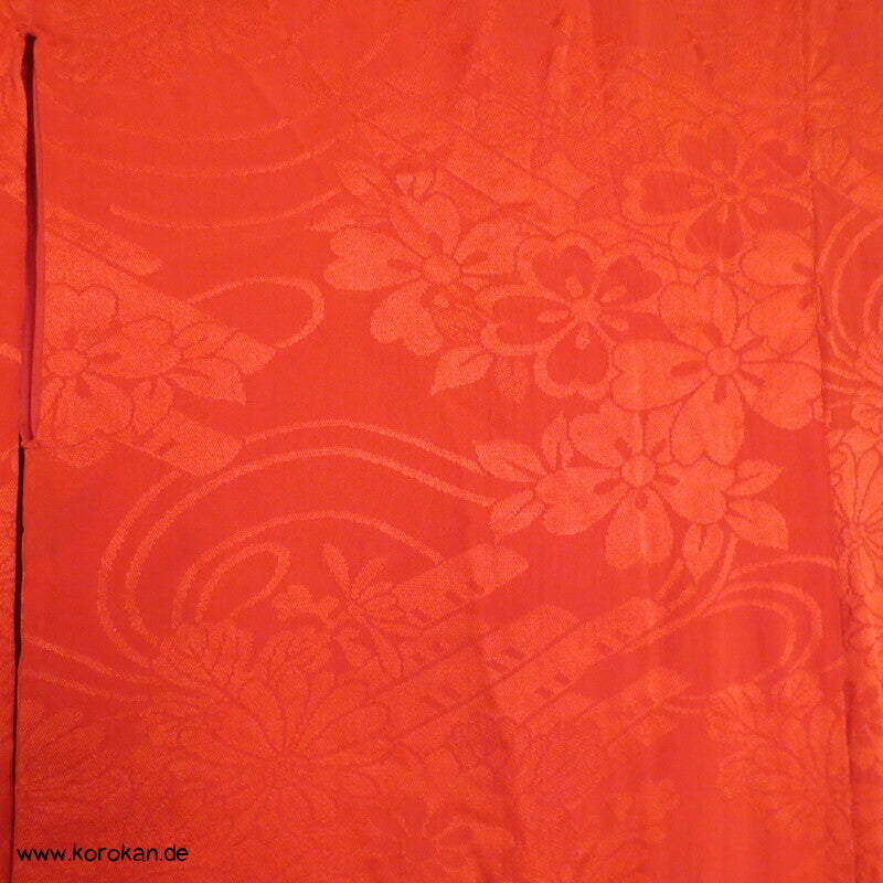 rote Blumenflöße Rinzu Damast Seide Juban Unterkimono