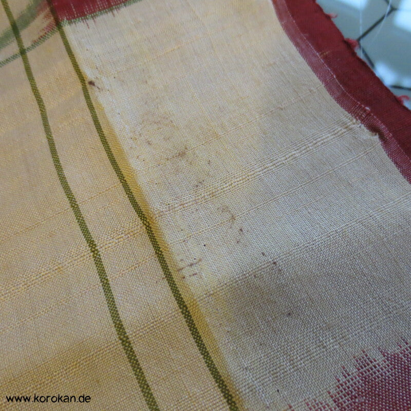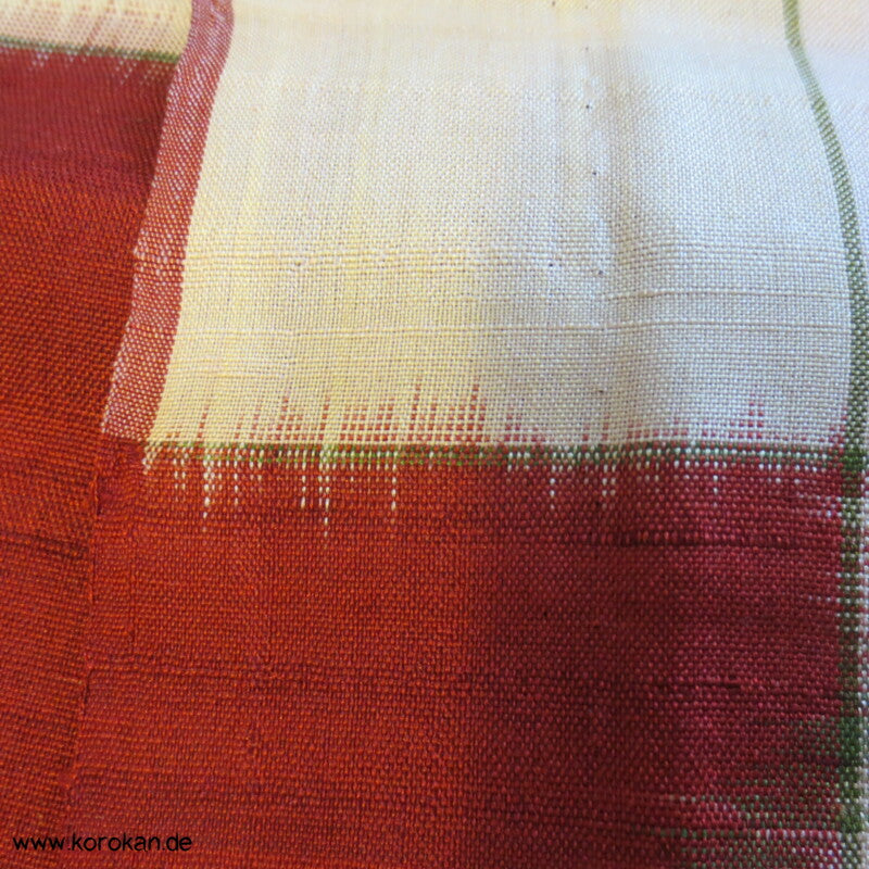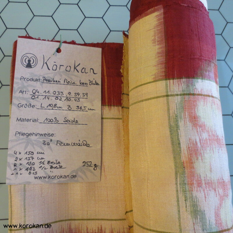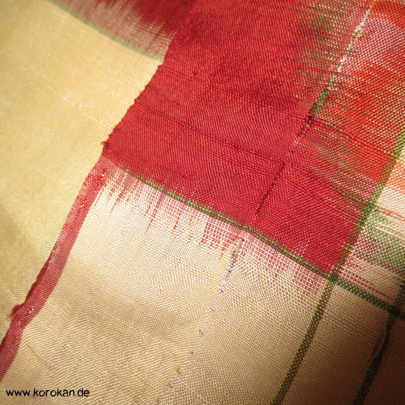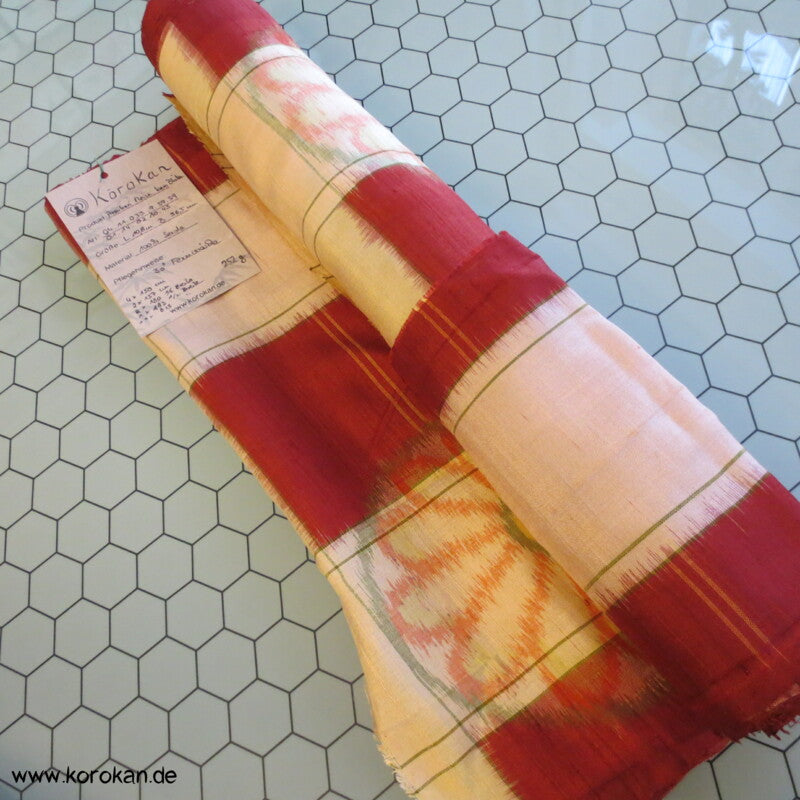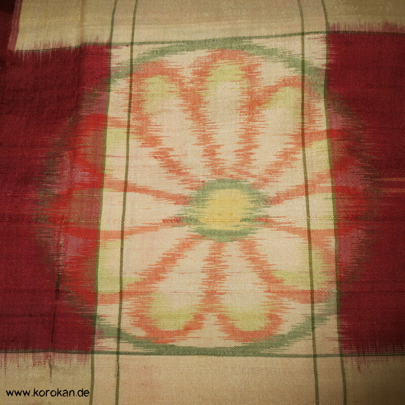 rote Kasuri Karos mit Kiku antike Araihari Kimono Meisen Seide