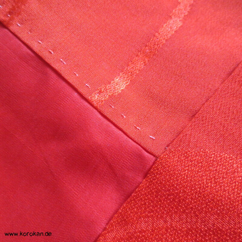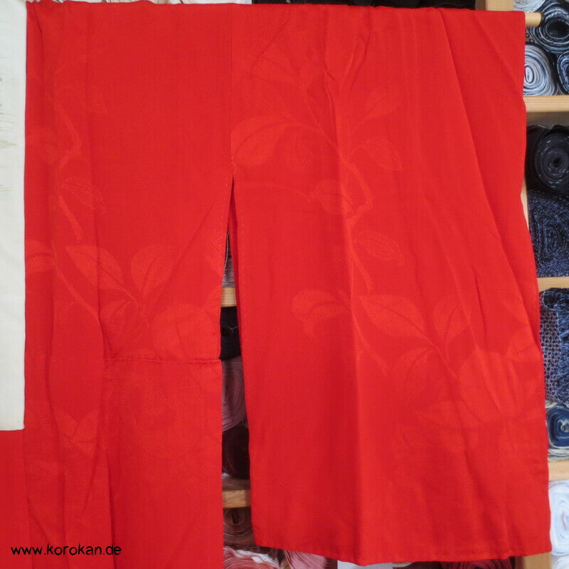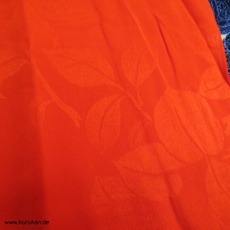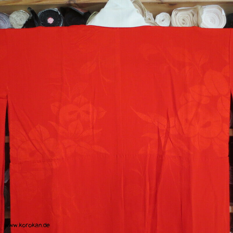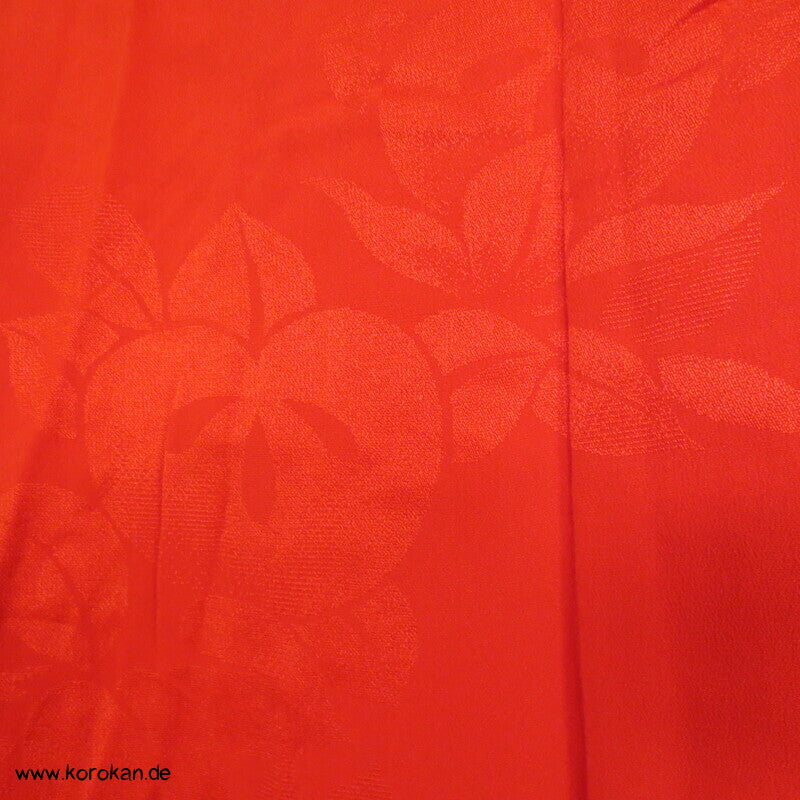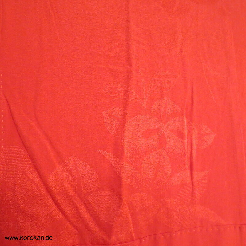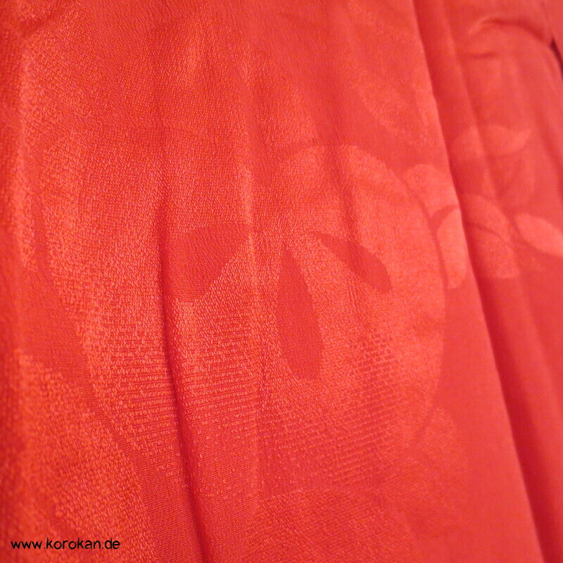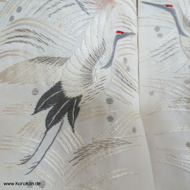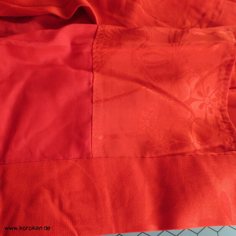 antiker Juban Unter Kimono rote hauchdünne Damast Seide, mit rotem Seidenfutter, mit Kranichen bestickter Han Eri,