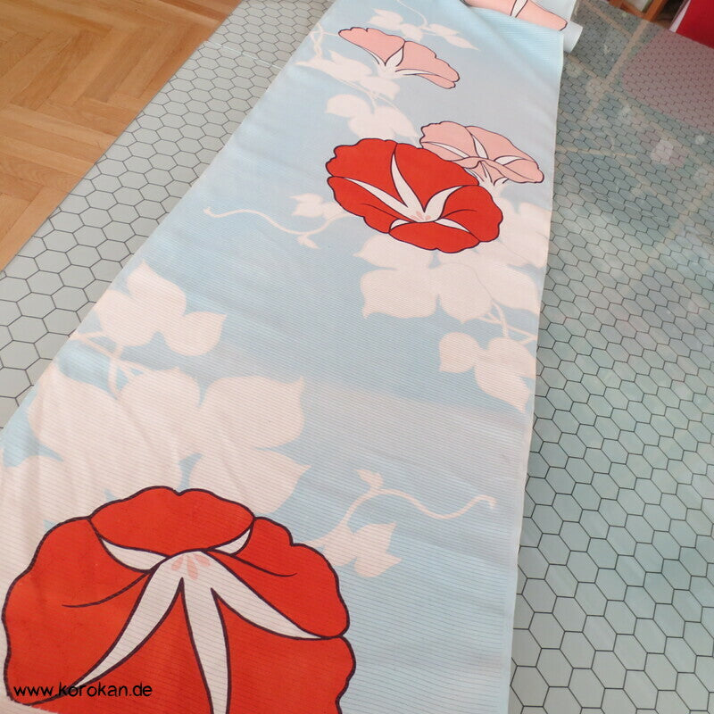 roten Asagao auf hellblau Sommer Kimono Rho Seide
