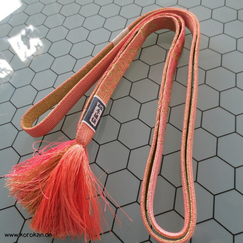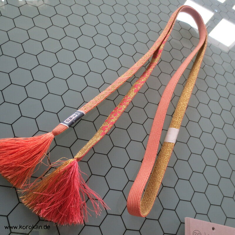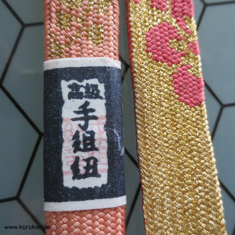 Vintage flacher Obijime sakura gold Obijime, Seide / Lurex, wechselseitig