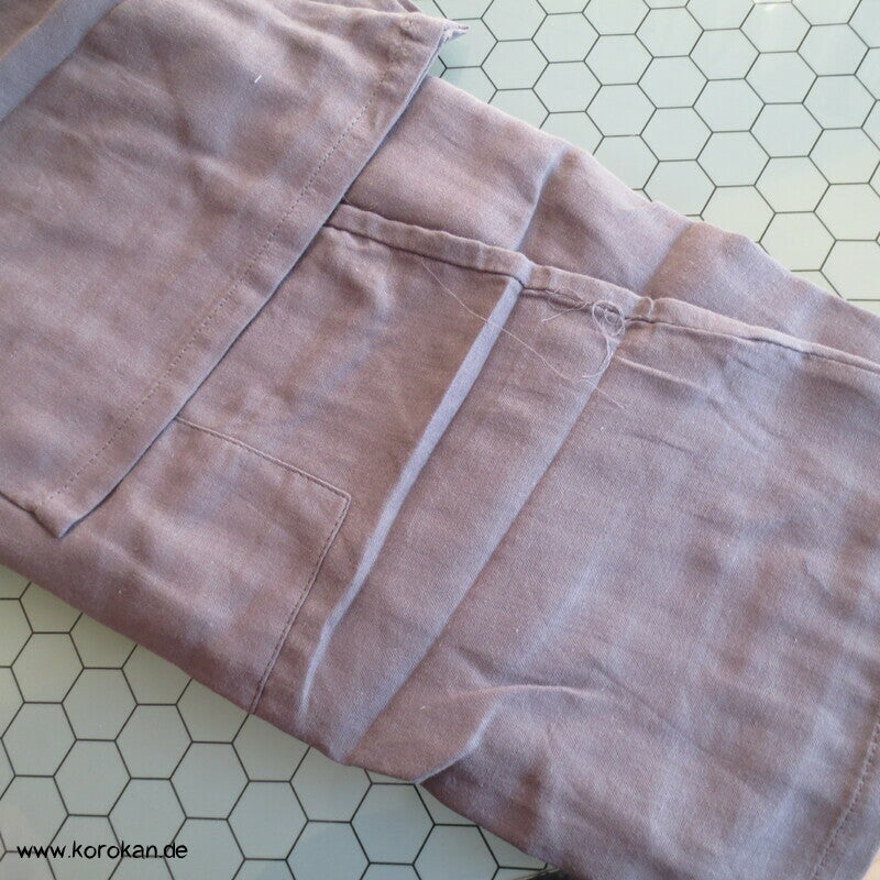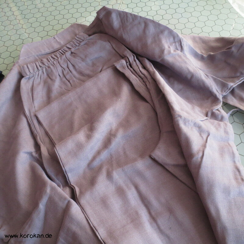 Samue - lange Hose mit Gummizug und Jacke mit Überlappung, halblange Ärmel und Bindebänder.