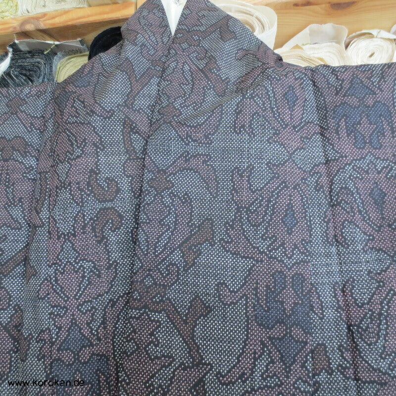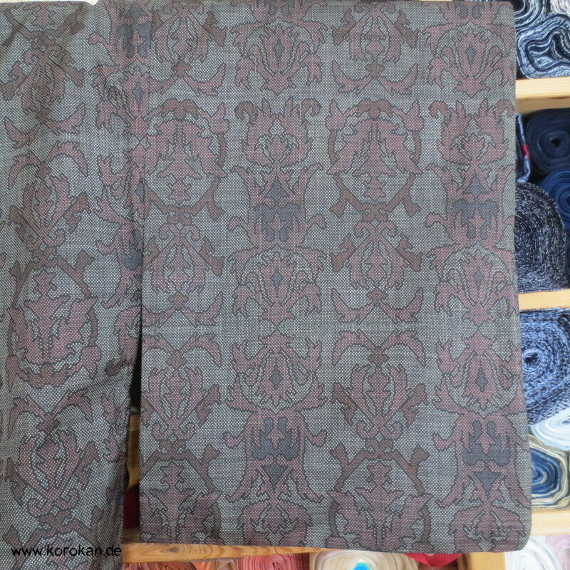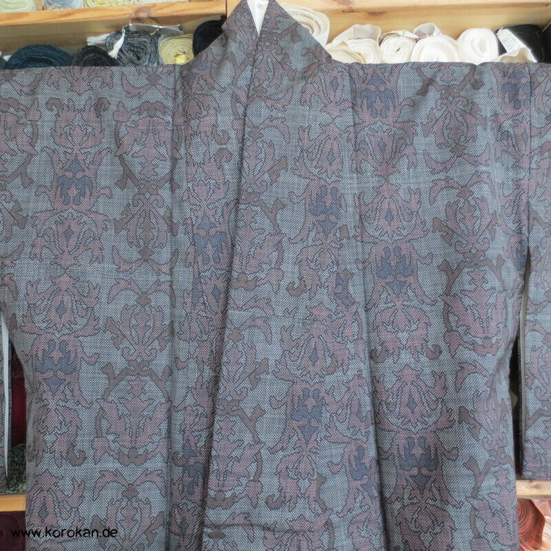 japanischer Sarasa mauve grau Kasuri Tsumugi Seiden Kimono