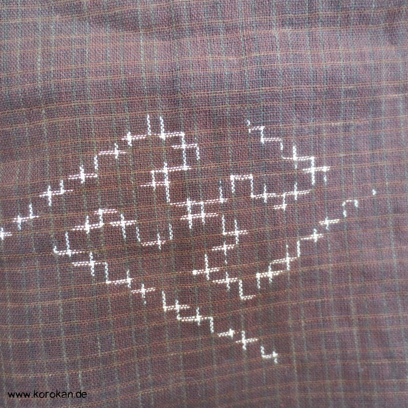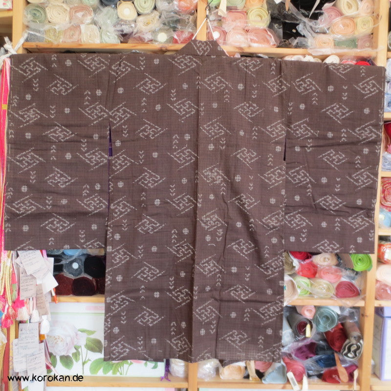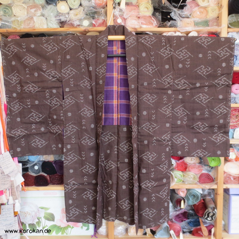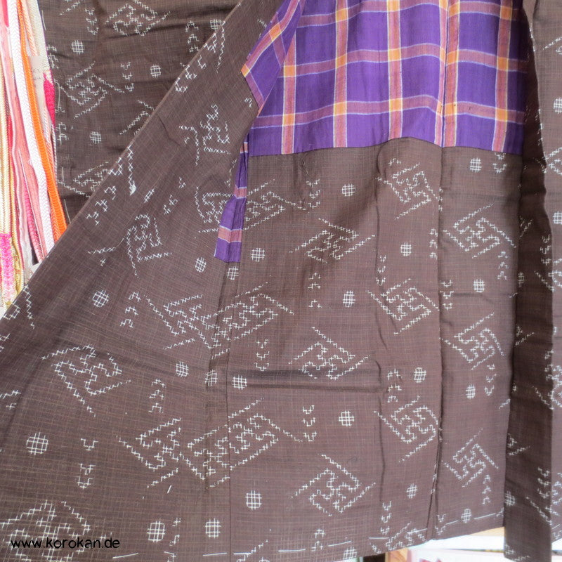 Vintage, eher antiker Haori Kimono Jacke Sayagata Kasuri Baumwoll Tsumugi, oberes Karofutter bunt