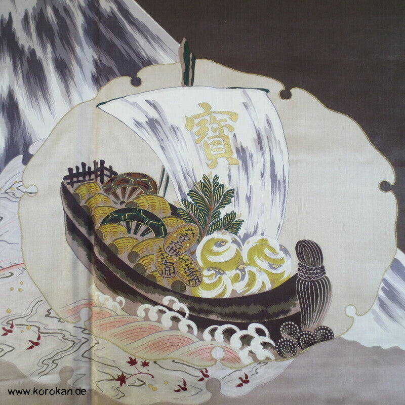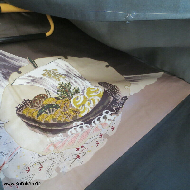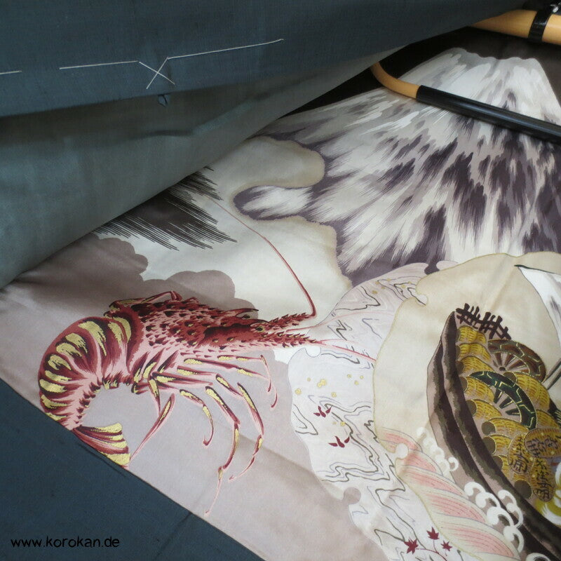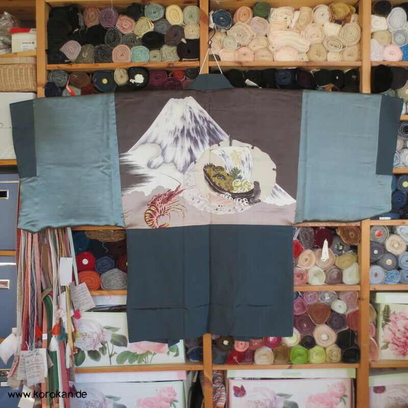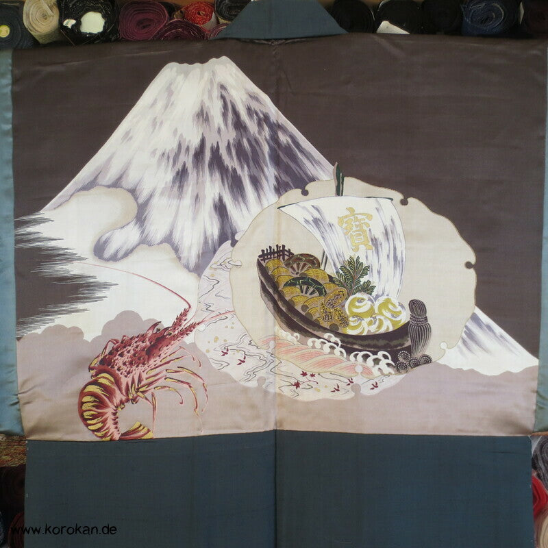 Schatzschiff, Ebi, Fuji San Futter - Haori Jacke glänzende Wildseide