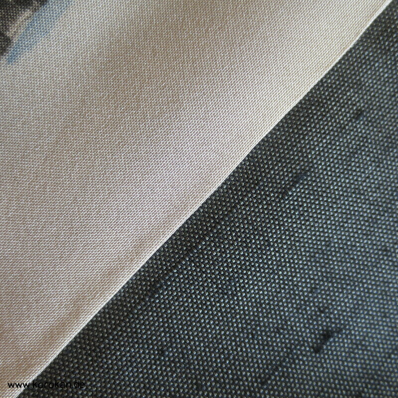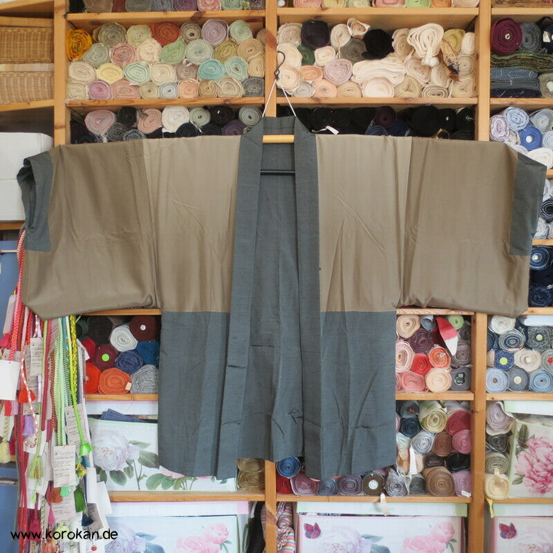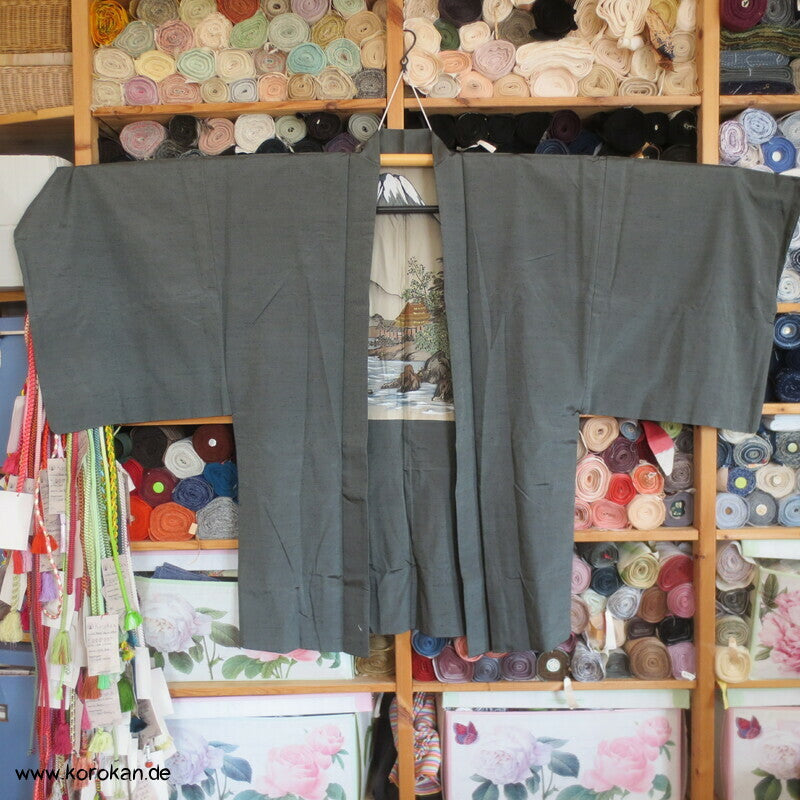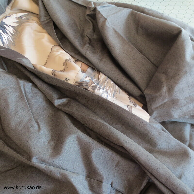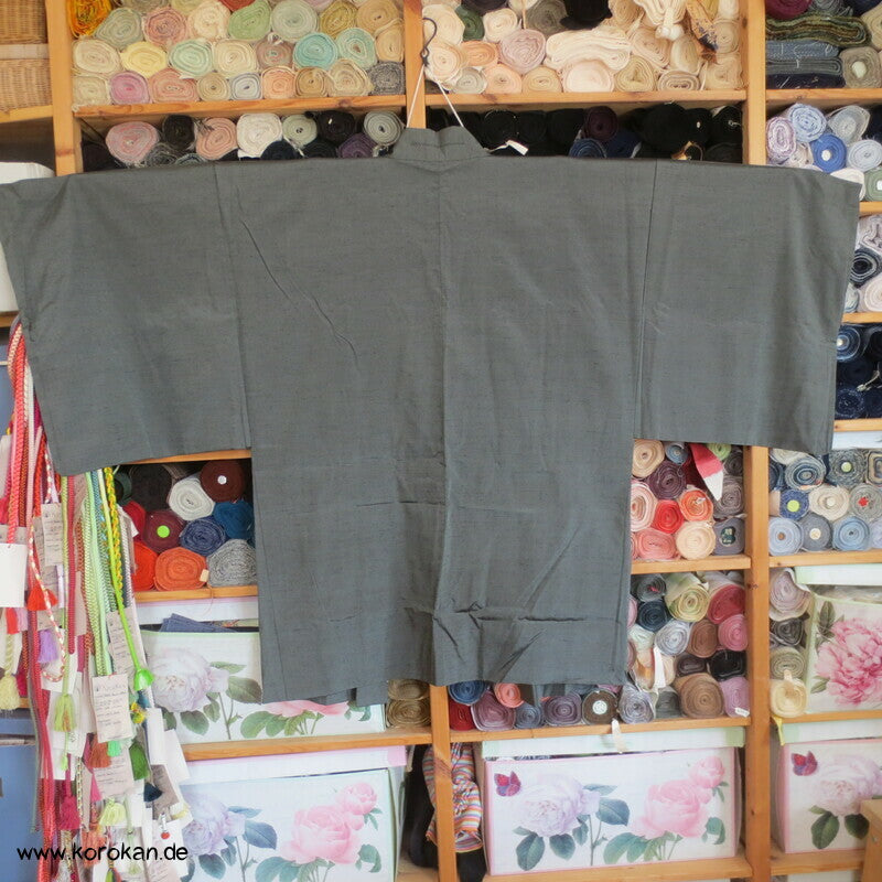 schiefergraugrüne Fushi Tsumugi Seiden Haori, Hütte am Fluss Futter
