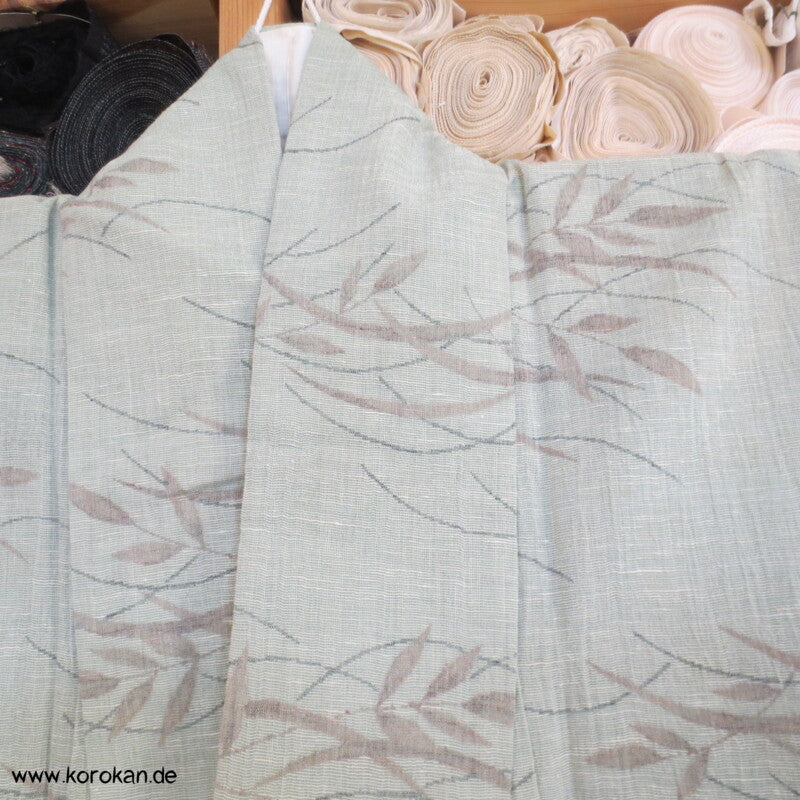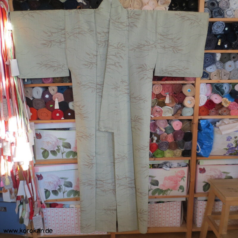 schilfgrünes Gräsermuster Hitoe Jofu Kimono - Hanfkimono für Sommer