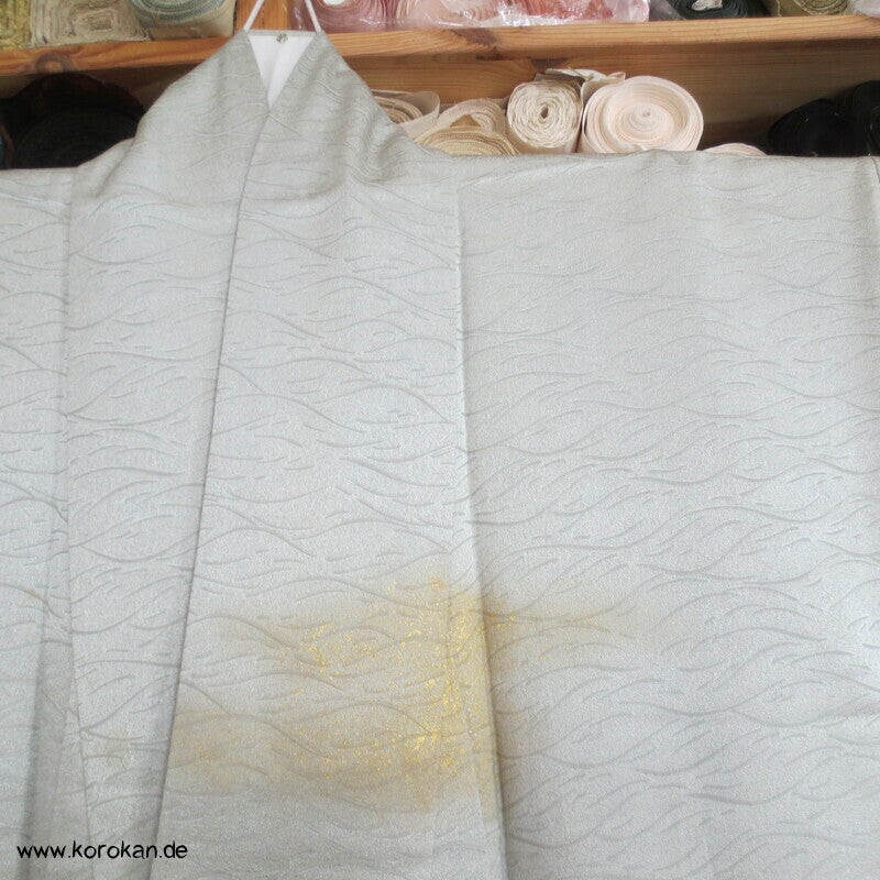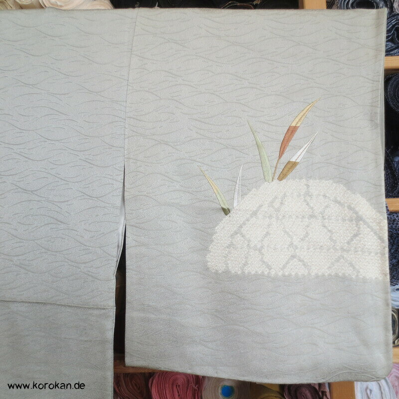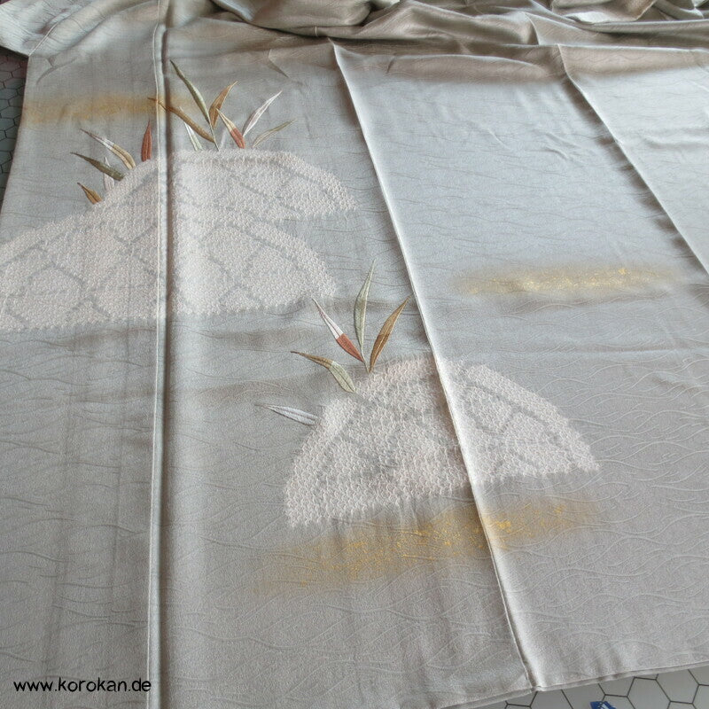 Schilflandschaft mit Bambusgittern Seidendamast mit Shibori Homongi Kimono