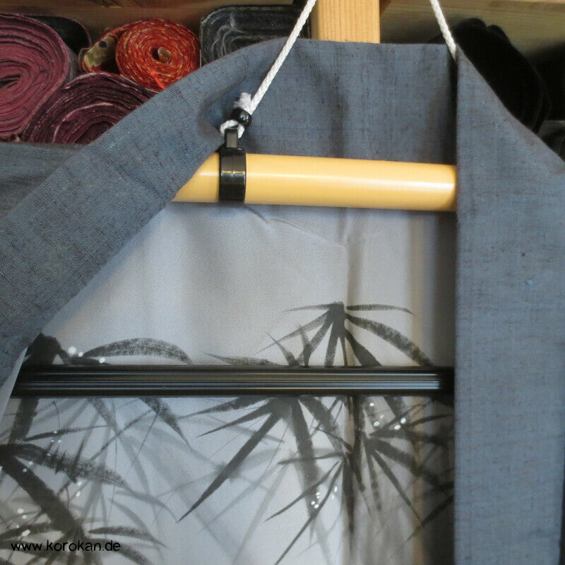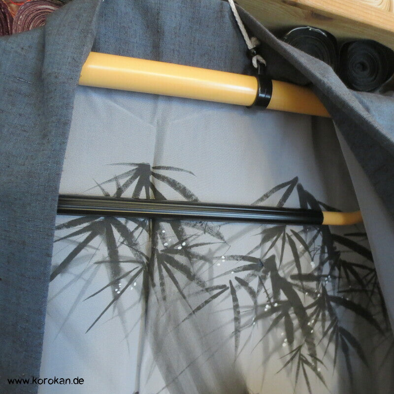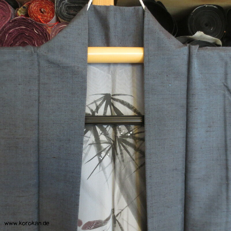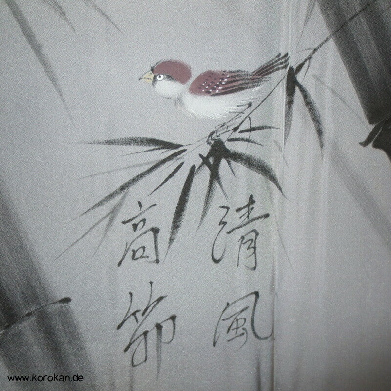 schlecht gelaunter Spatz im Bambus Futter Haori Kimonojacke