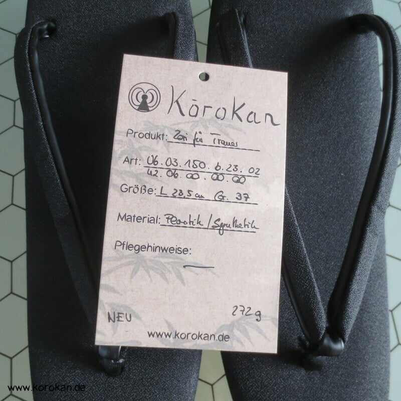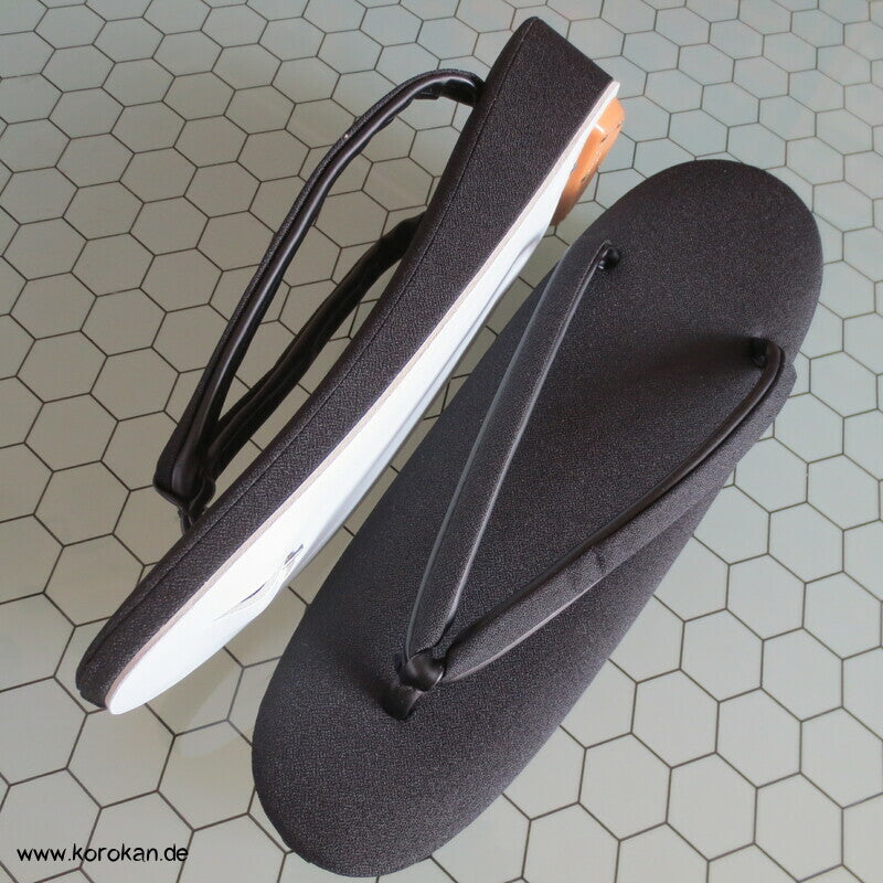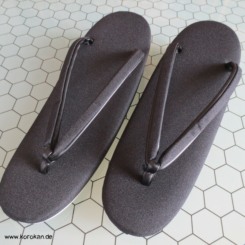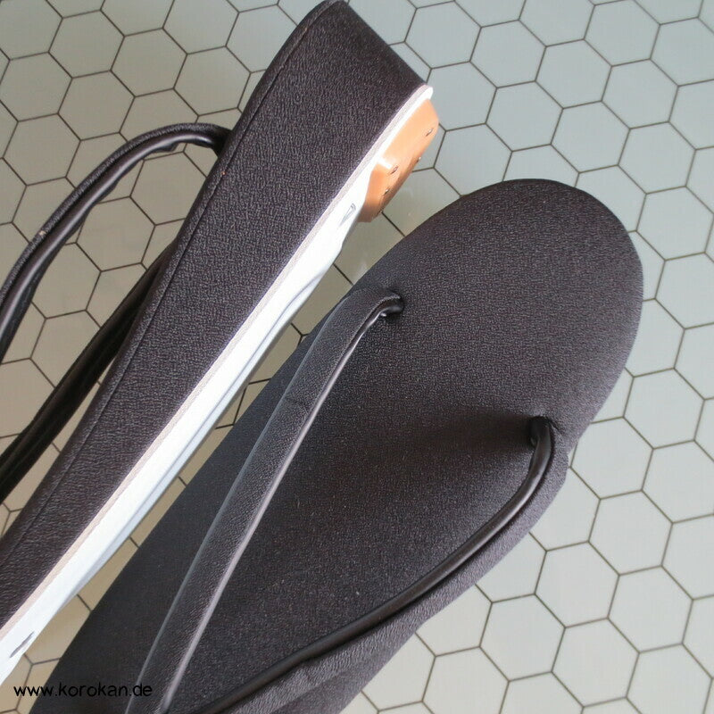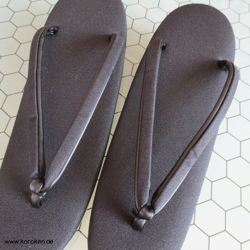 Vintage unbenutzte schwarze Satin Zori mit schwarzen Stoffriemen, für den Trauerkimono, für formelle Auftritte, sollten mit Tabi getragen werden