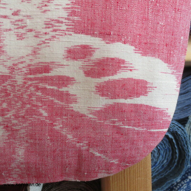 Vintage Tsumugi Seide Komon Kasuri helle Schmetterlinge in rosarot, oberes Futter helle Seide nachgedunkelt, unteres Hakkake Futter rote Honan Seide