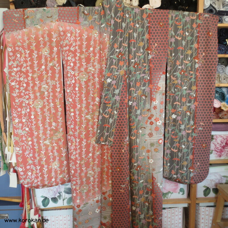 großer Furisode Seidencrepe Kimono Schmetterlinge, Blüten, großer Schwung