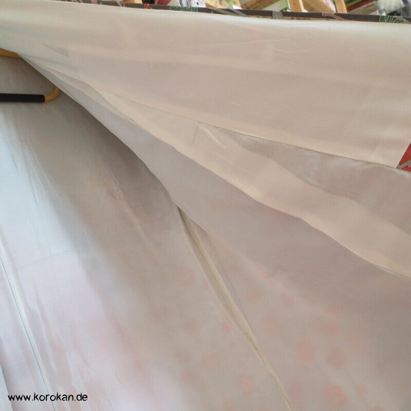 japanischer Vintage Furisode Kikko Seidencrepe Kimono riesiger Sakura Blütenzweig riesiger Schwung, viel Golddruck, oberes Futter helle Seide, unteres Hakkake Seidenfutter Obermaterial mit Motiven