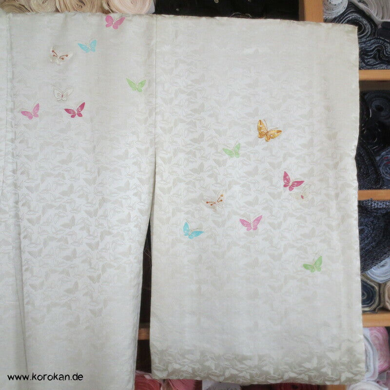Schmetterlinge, gewebt, gemalt, gestickt Homongi Kimono Seidendamast