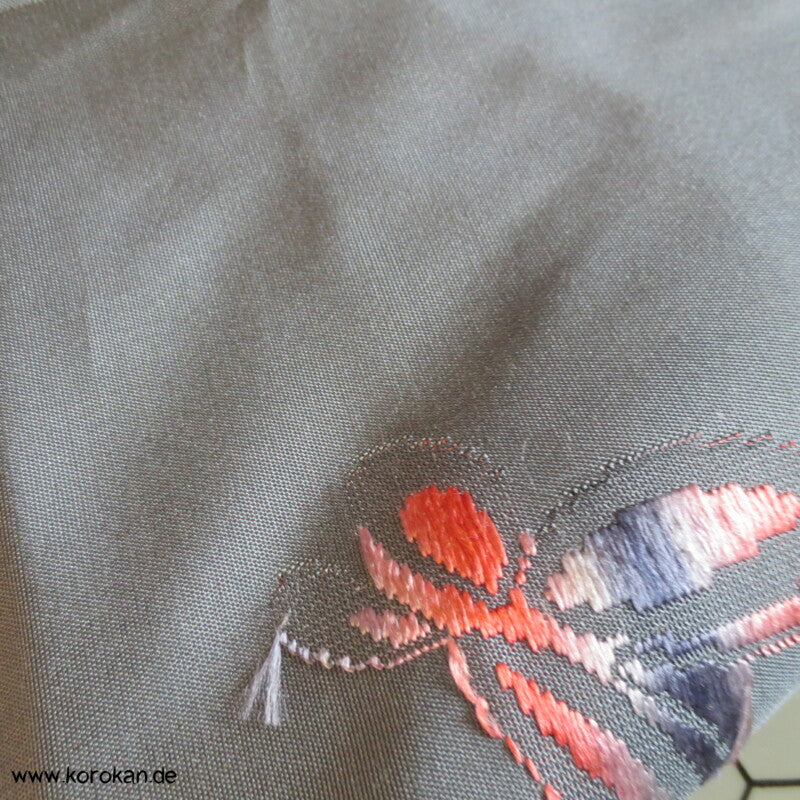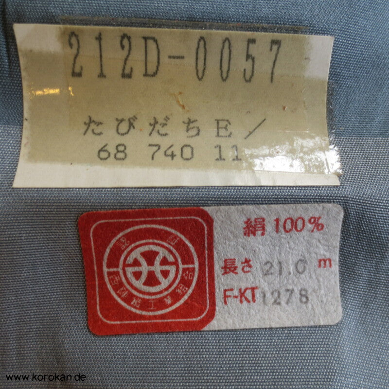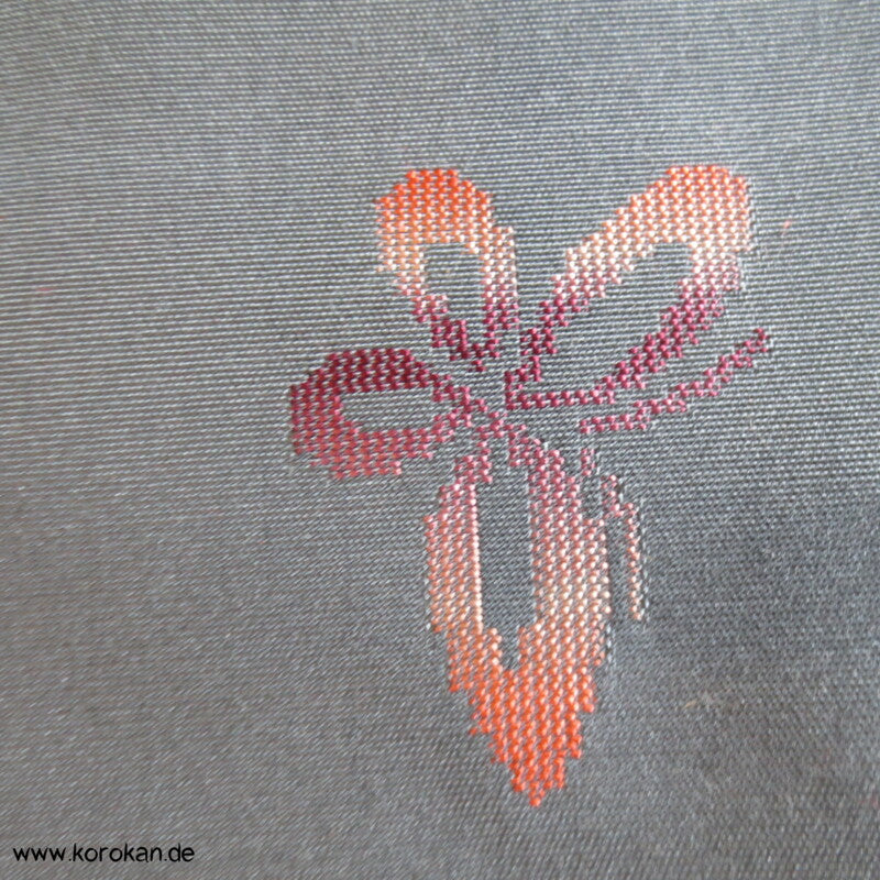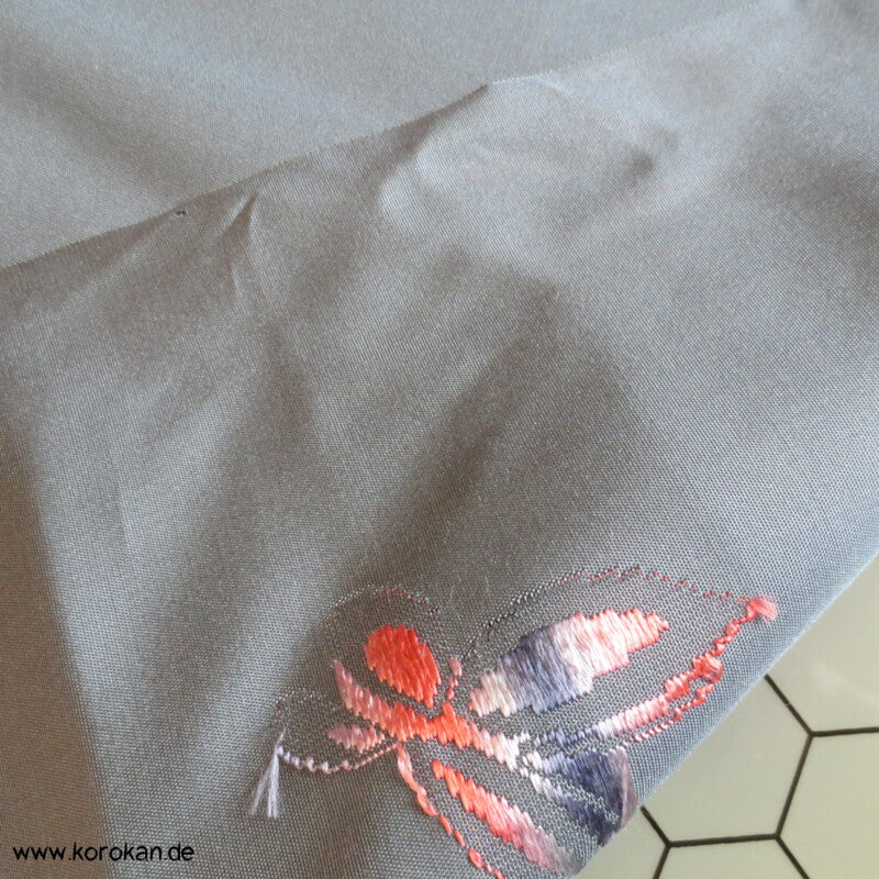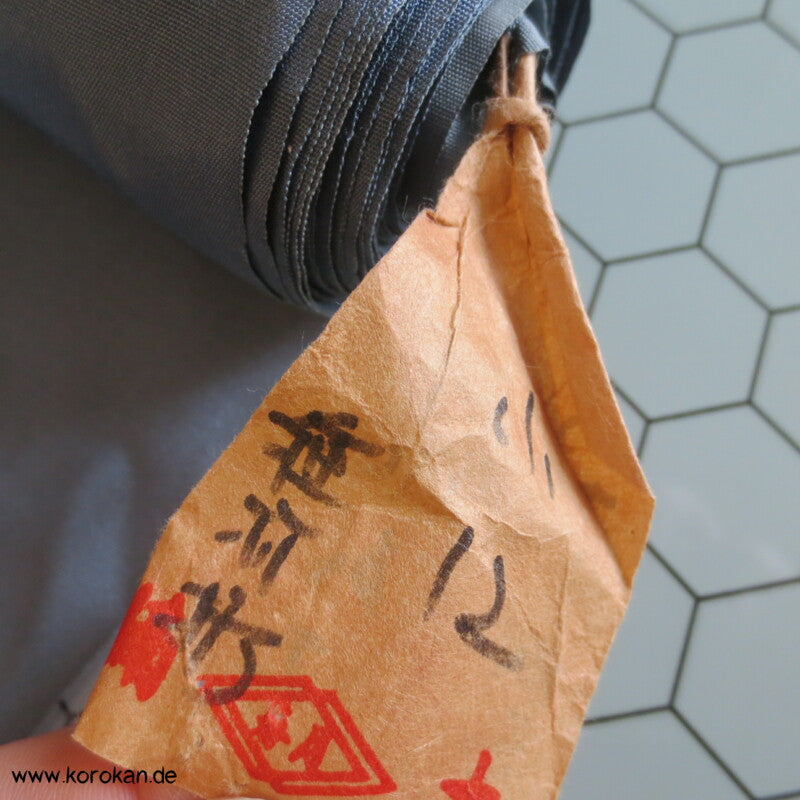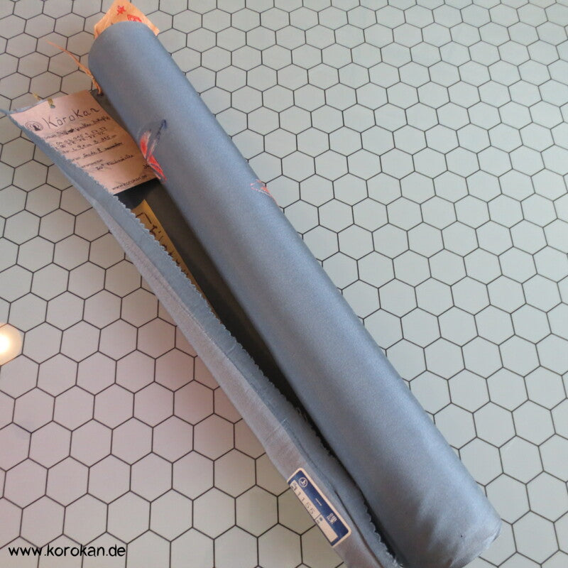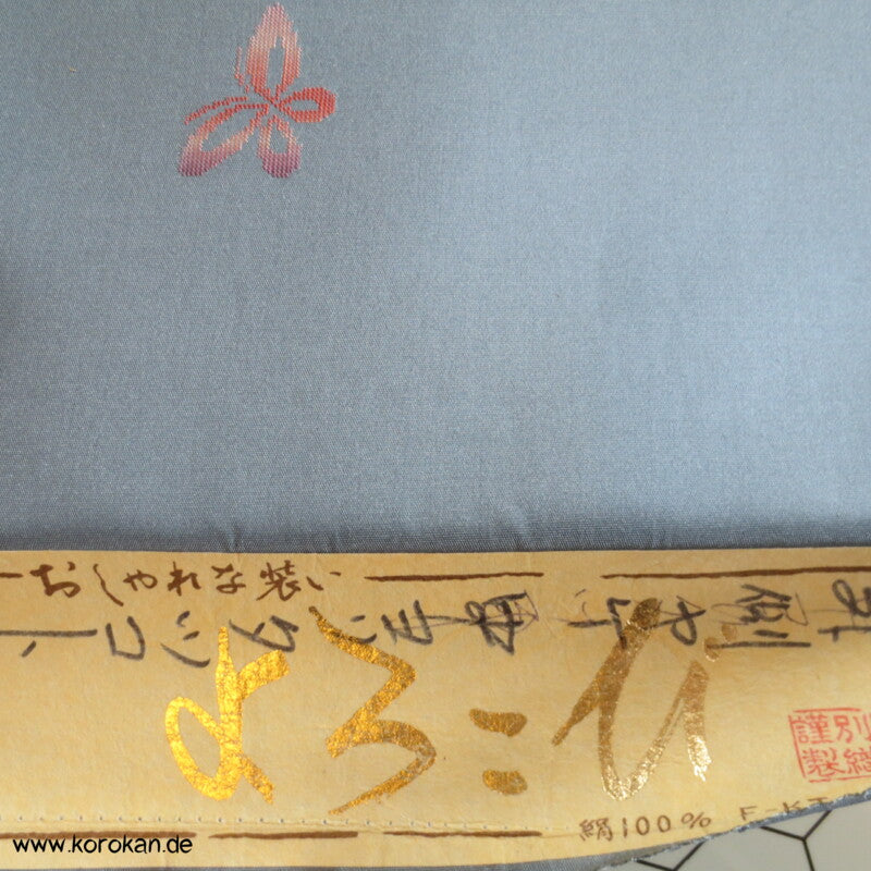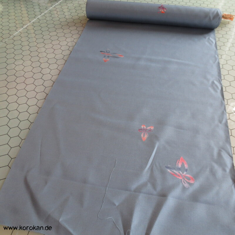 Vintage unbenutzte Kimono Rest Stoffrolle Tanmono Seiden Jacquard Broché eingewebte Schmetterlinge auf bleigrauer Taftbasis