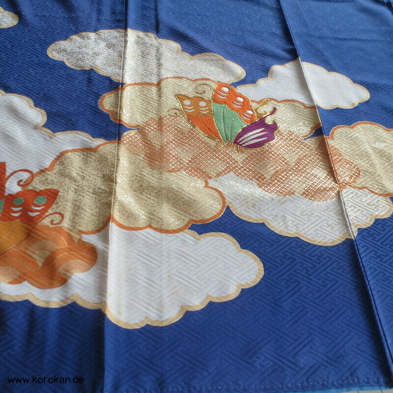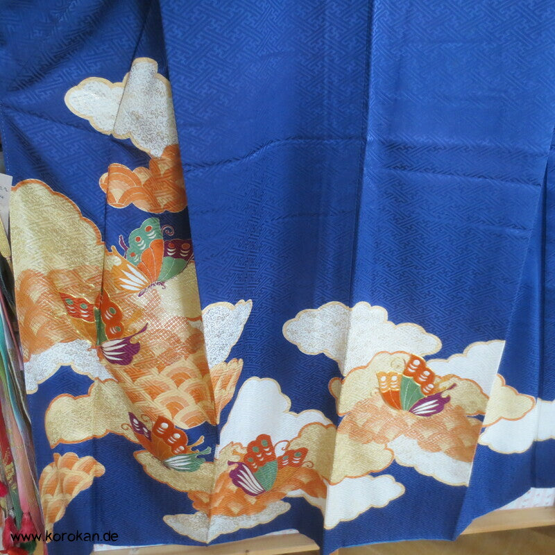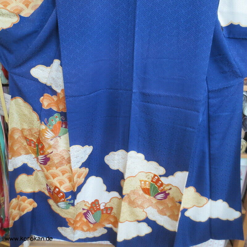 Schmetterlingen auf kobaltblau Homongi Kimono, teilbestickt