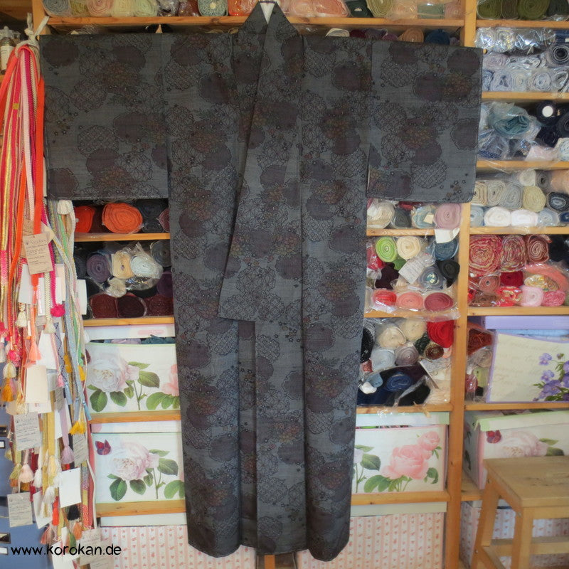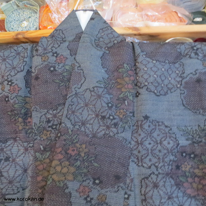 Schneeflocken, Blumen Kasuri Tsumugi Seiden Kimono