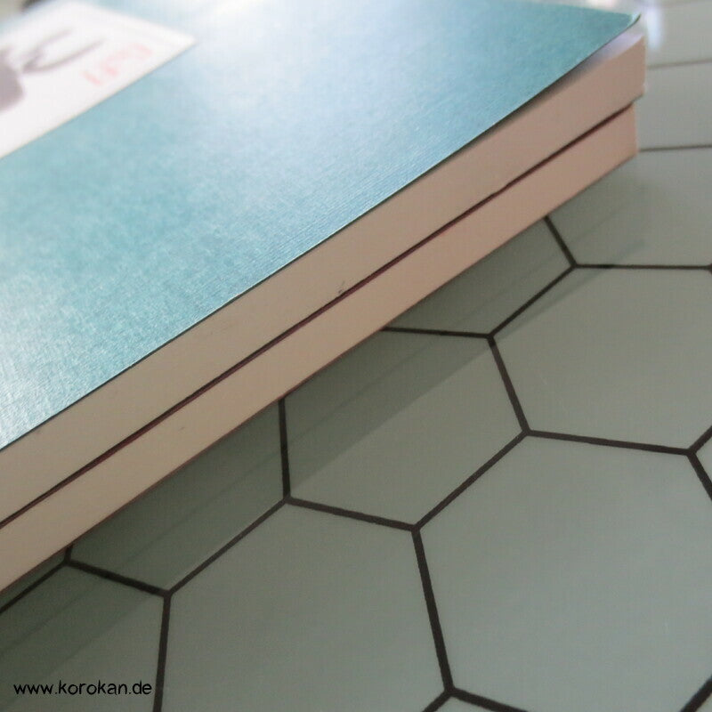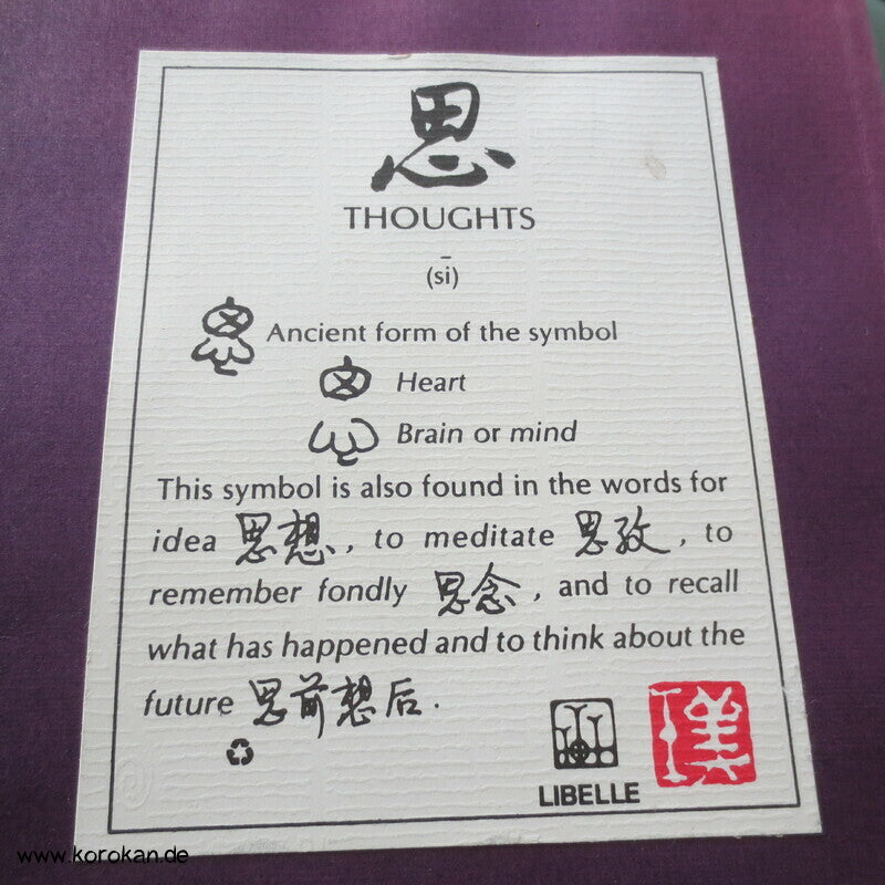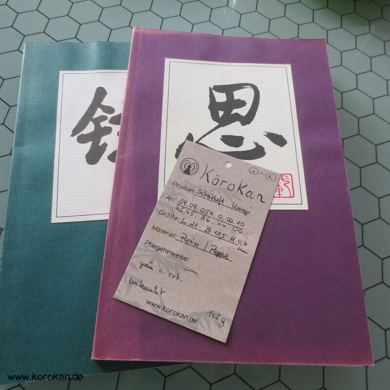Tagebuch, Journal, Schreibheft mit Blanco Seiten - broschiert - Pappeinband mit feinen Papierseiten, Vorder und Rückseite mit jeweils einem Kanji mit Erläuterung