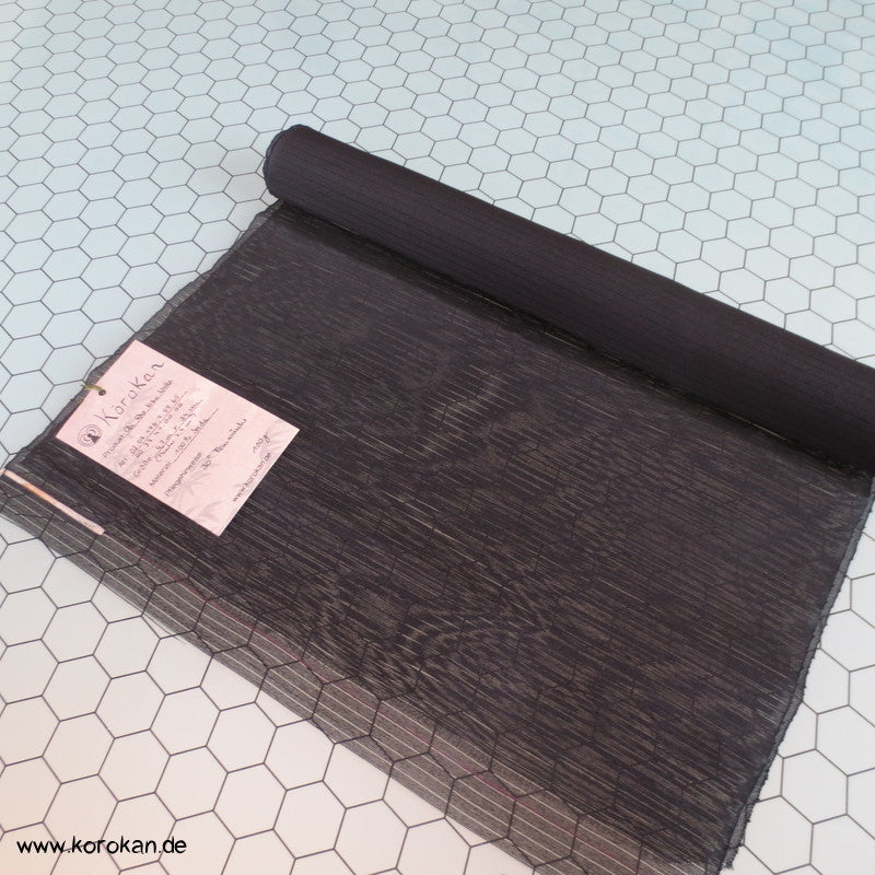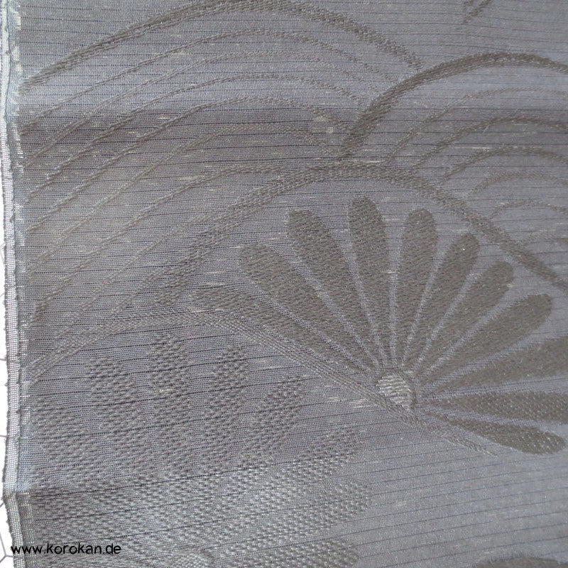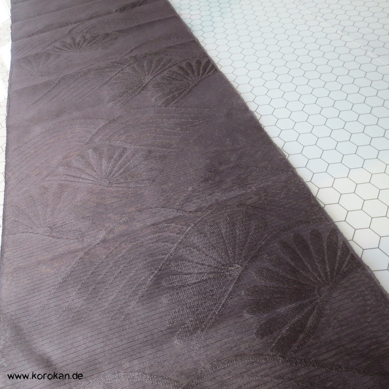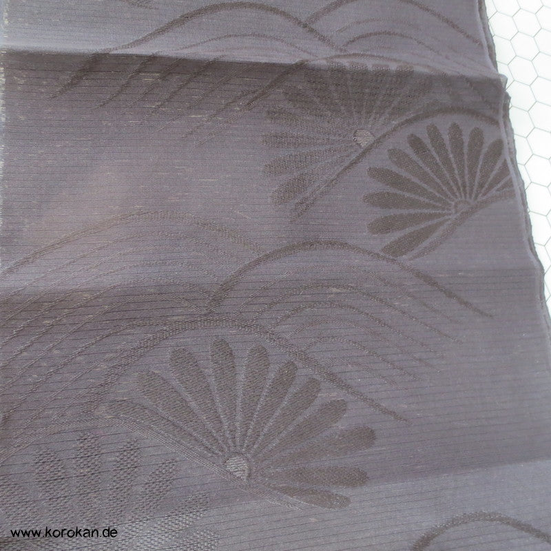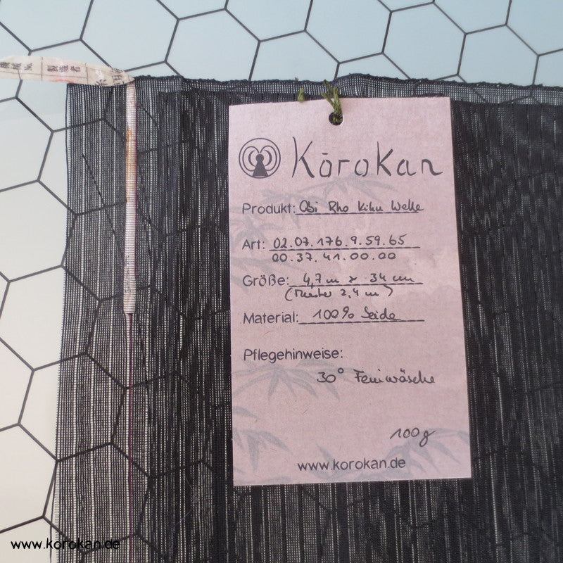 Vintage unbenutzte japanische Seide schwarze Rho Drehergewebe für einen Obi Kimonogürtel mit eingewebten Wellen mit Chrysanthemen