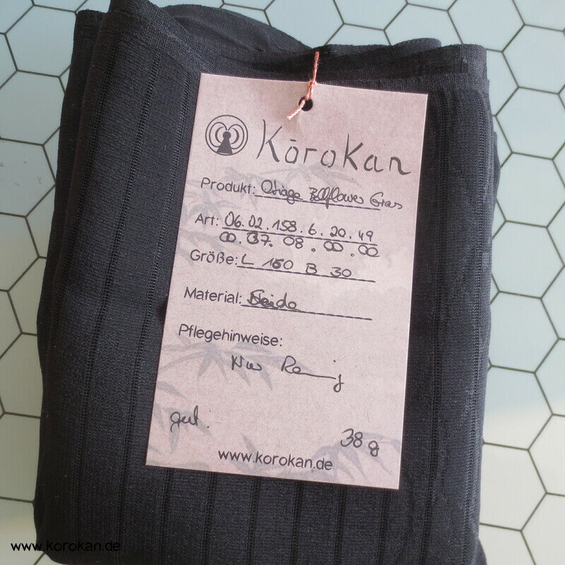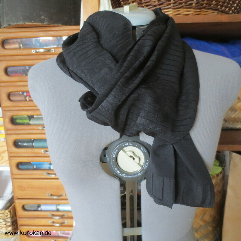 Vintage unbenutzter Obiage schwarze Rho Seide mit eingewebten Wellen