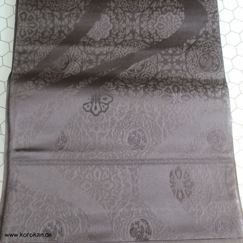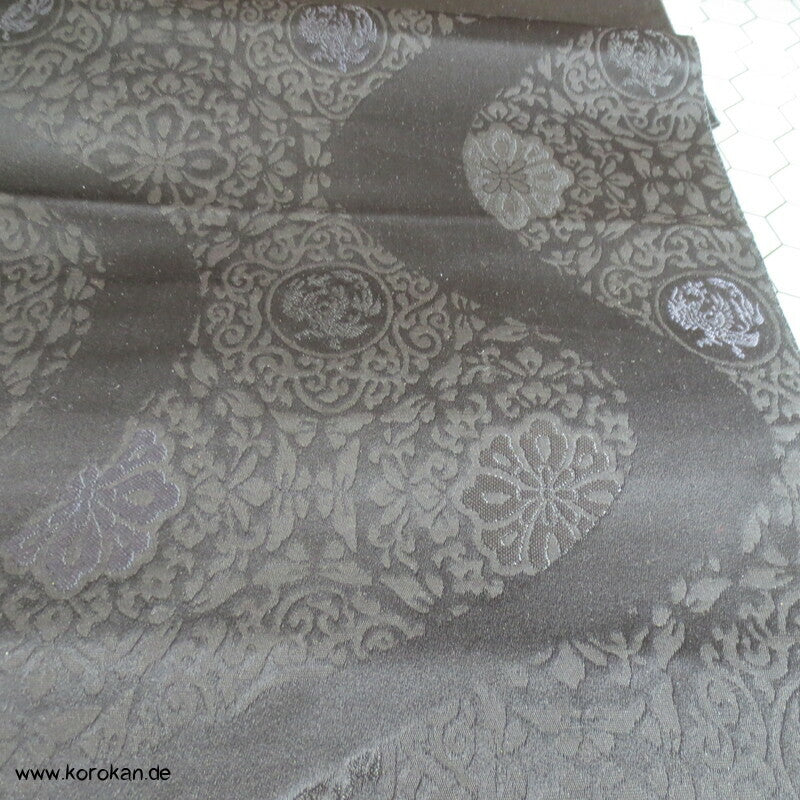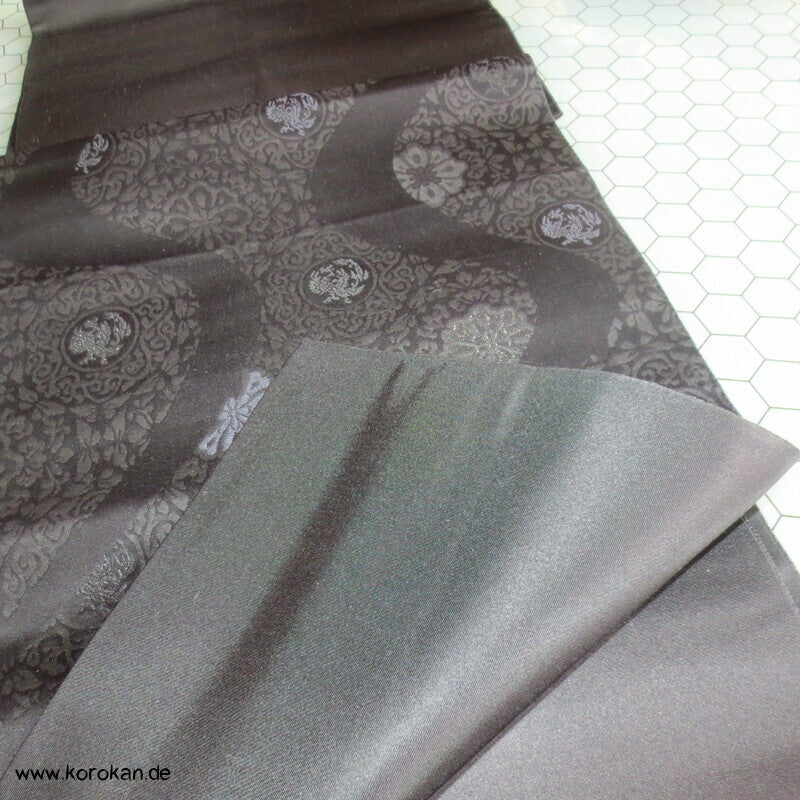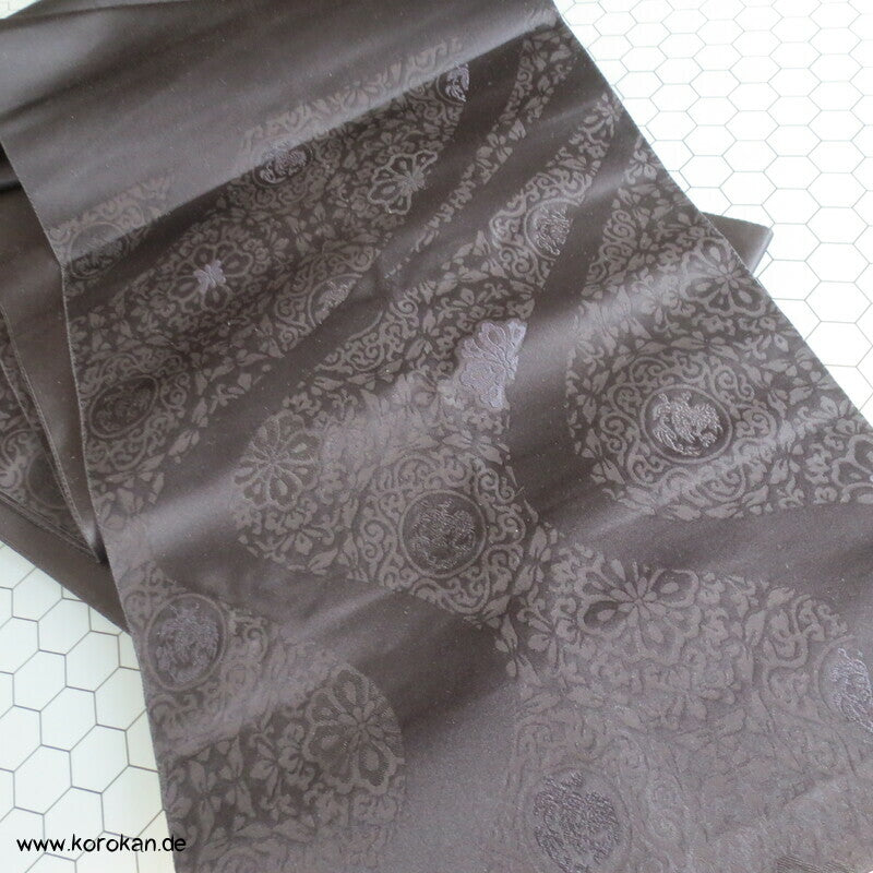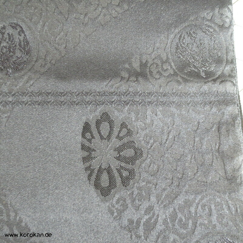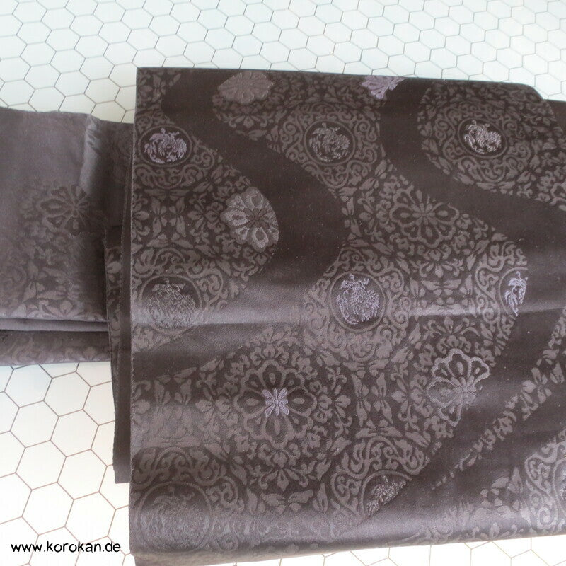 japanischer Vintage Seidenjacquard Fukuro Obi, schwarz mit Musterwelle gewebt