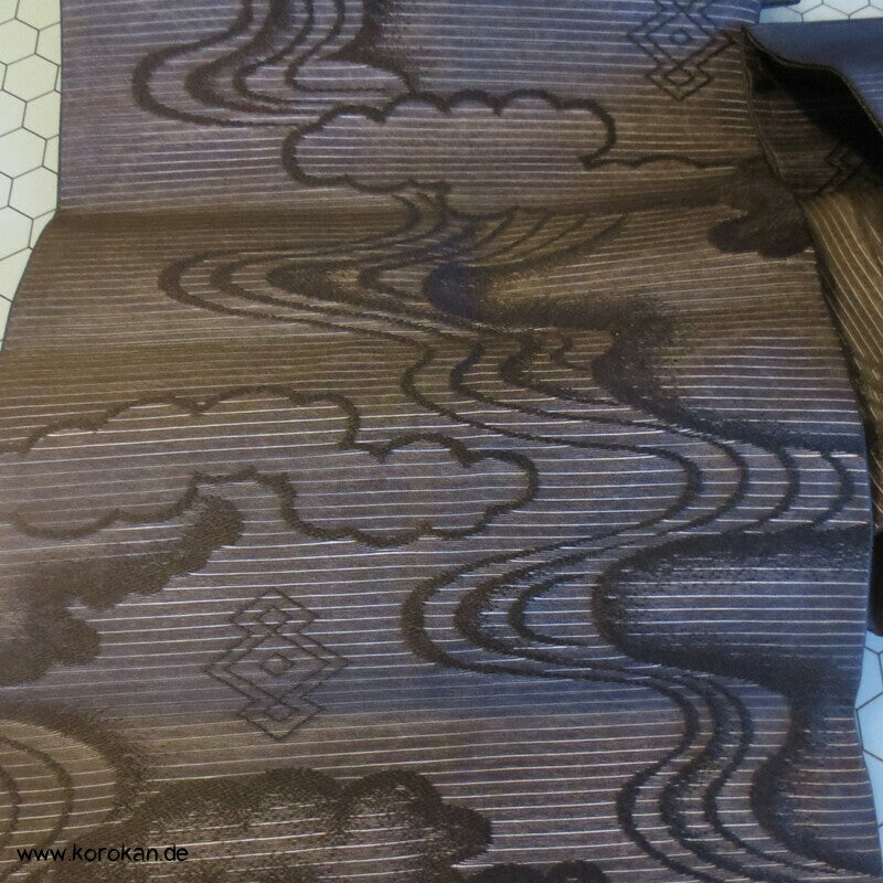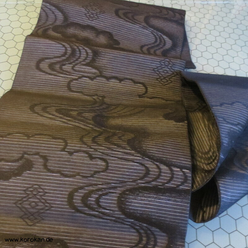 Vintage Rho Drehergewebe Sommer Seiden Nagoya Obi mit eingewebten Flusswellen, Wolken und Matzukawabishi