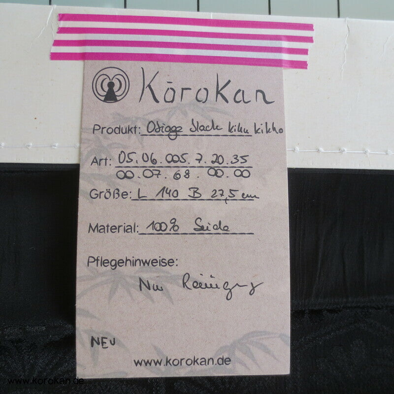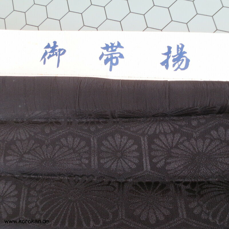 Vintage unbenutzter originalgehefteter Obiage schwarze Damast Kikko Seide
