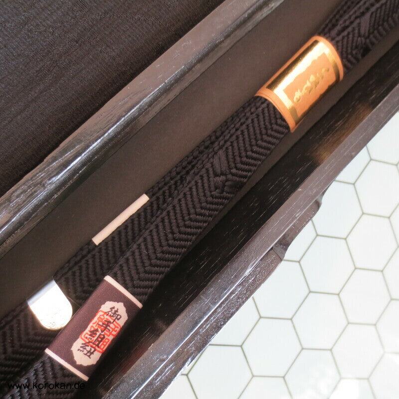 schwarze Trauer Obiage + Obijime in Geschenkbox aus Holz