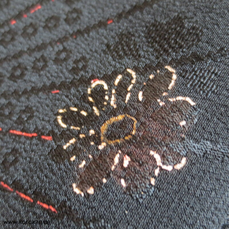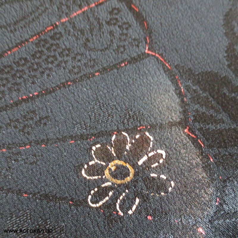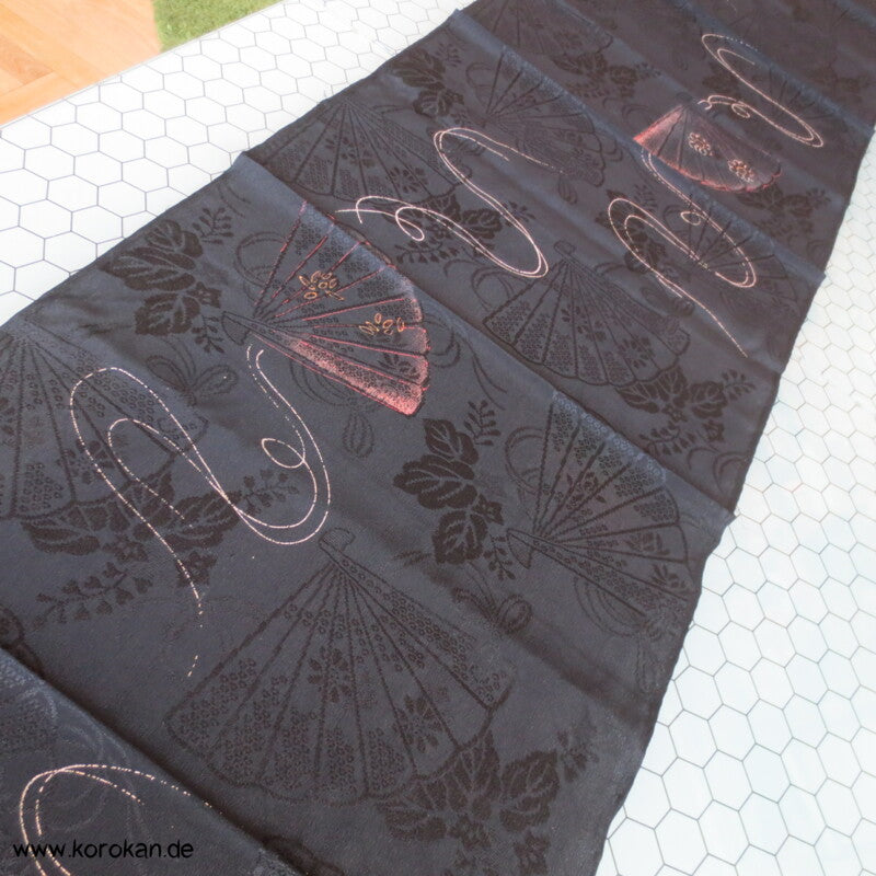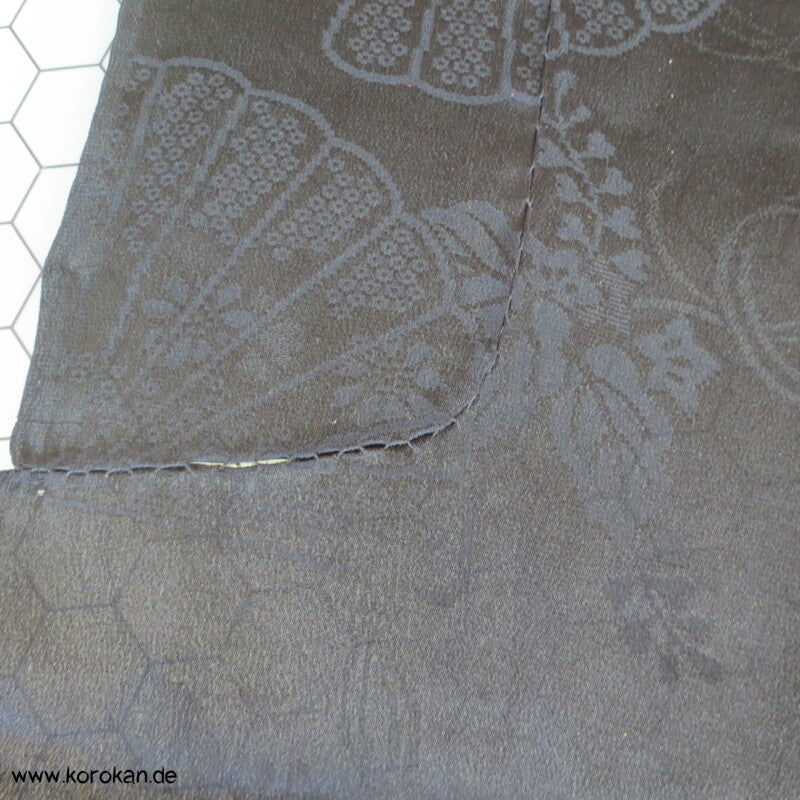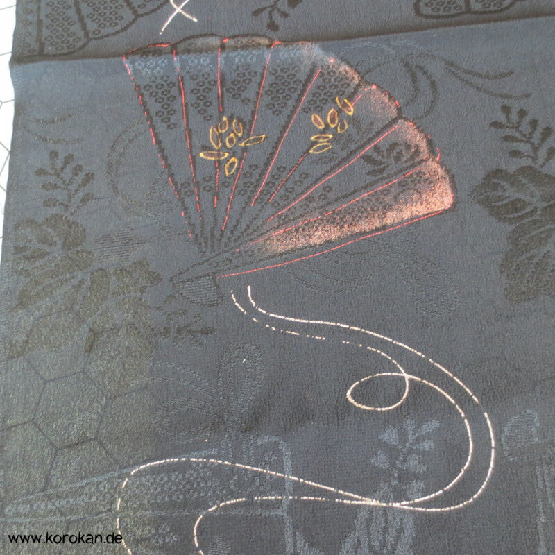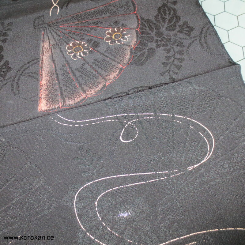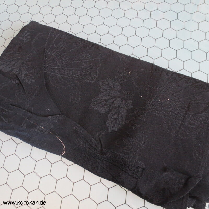 schwarzer Fächer Rinzu Damast Seide Araihari Kimono