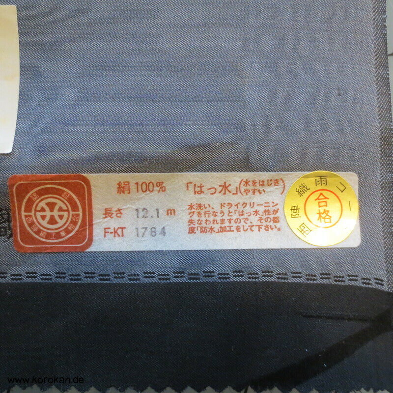 Vintage unbenutzter schwarzer Haori Kimono Gräserdamast Seiden Stoff - = Tanmono mit Etiketten.
