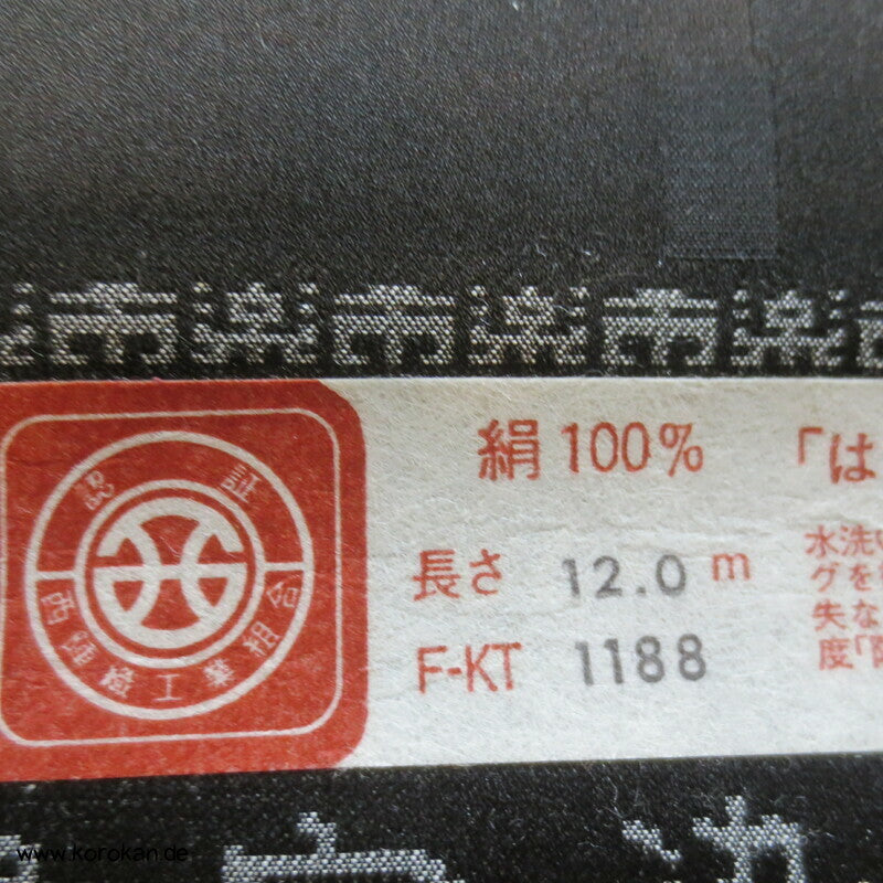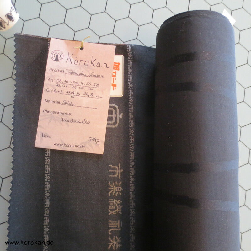 Vintage unbenutzter schwarzer Haori Kimono Tatewaku Damast Seiden Stoff - = Tanmono mit Etiketten.