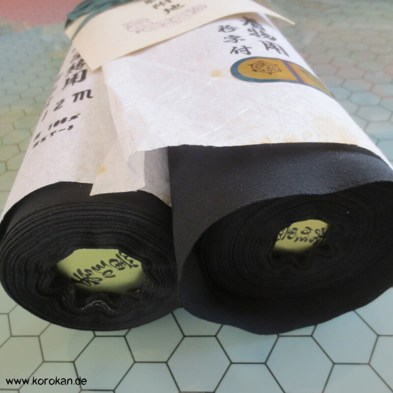 Vintage unbenutzter japanischer Doppel Ensemble Stoffballen schwarzer Chirimen Crepe Seide mit Mon Leerstellen für formelle Montsuki und Mofuku Kimono.
