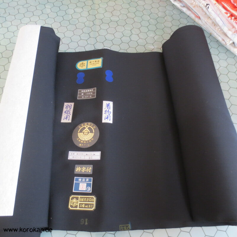 schwarzer Mofuku Chirimen Crepe Seide, Ensemble Tanmono für Haori + Kimono
