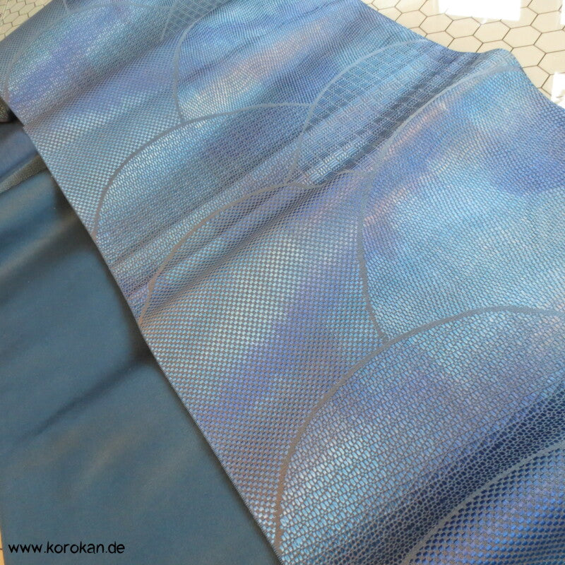 Vintage Fukuro glänzende Segaiha Wellen mit unterschiedlichen Webmustern blau schillernd