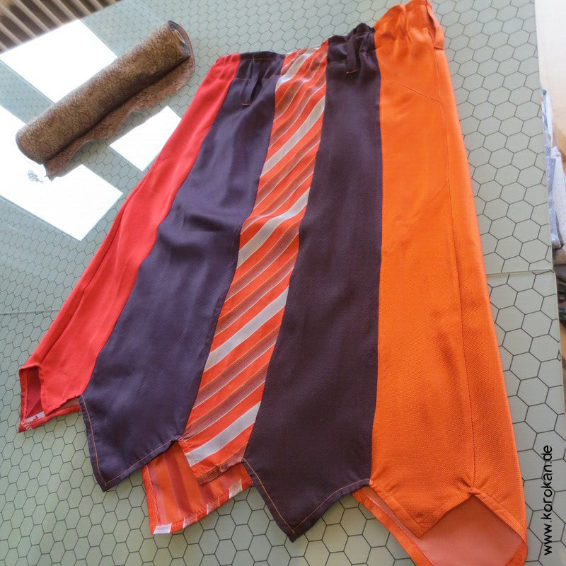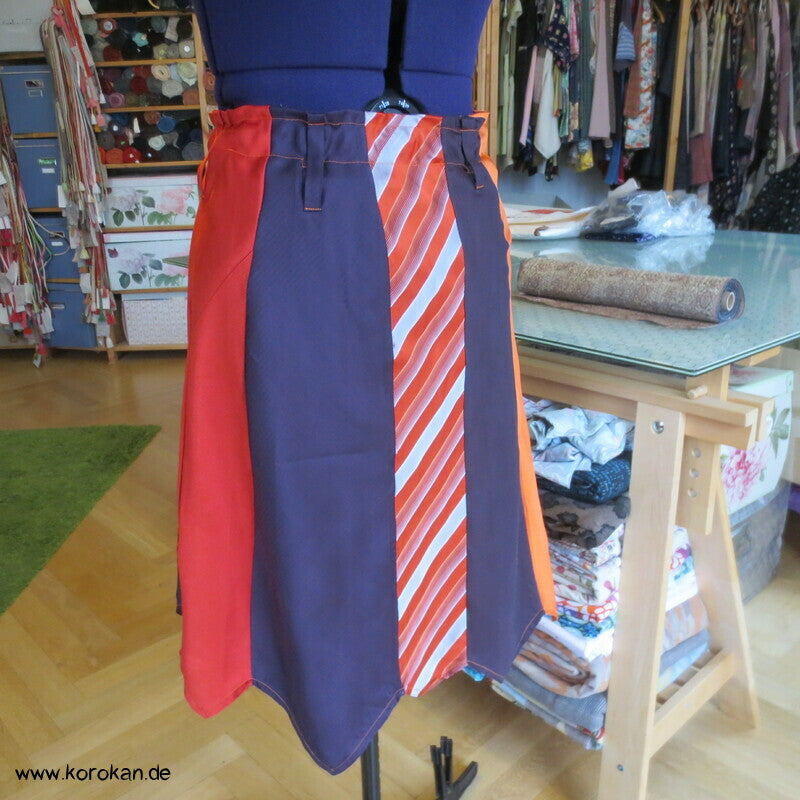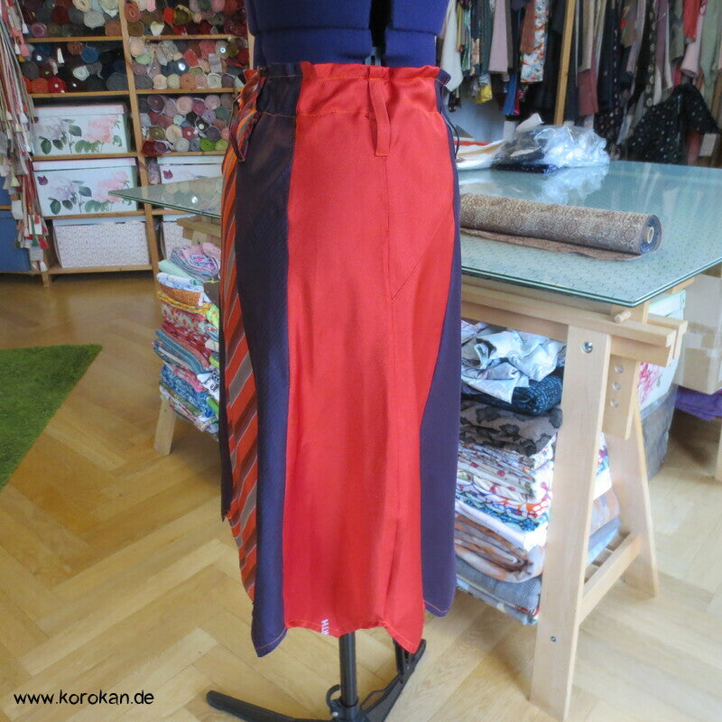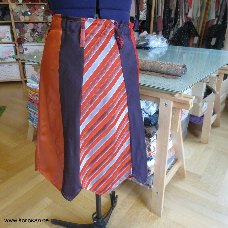 Seiden Krawatten Upcycling Rock in rot orange persimmon aubergine - mit Gummizug und Gürtelschlaufen
