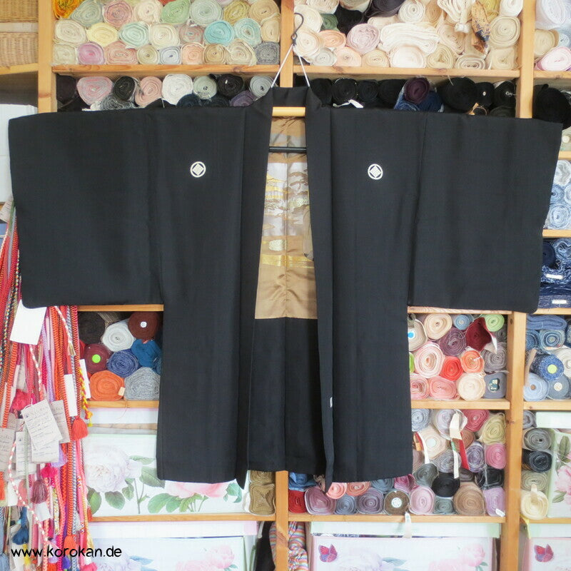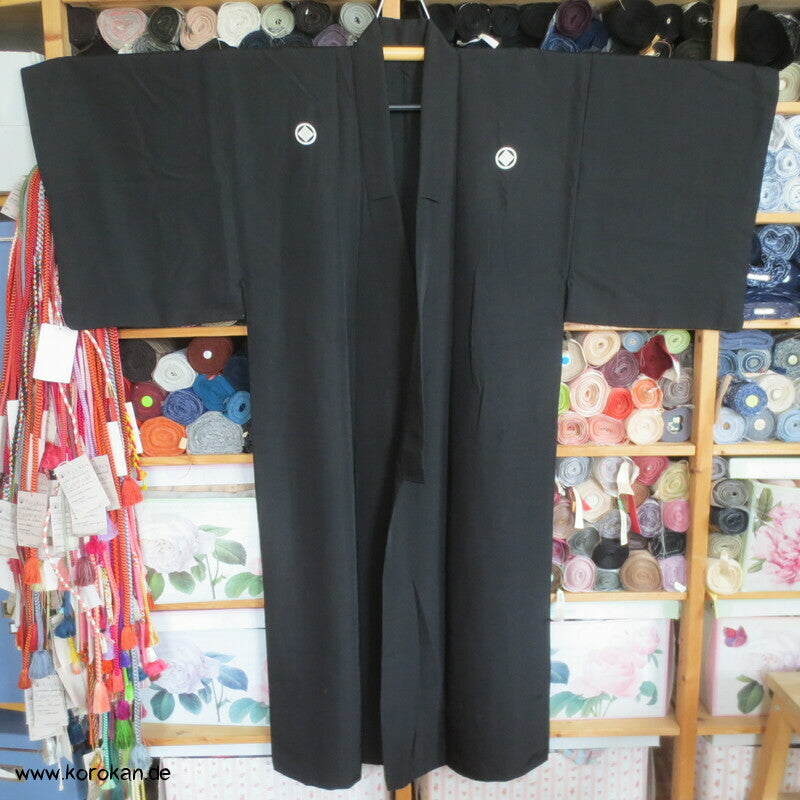 Vintage Männer Honan Seiden schwarzer formeller Kimono, mit 5 Mon, Futter schwarze Seide, sehr fein